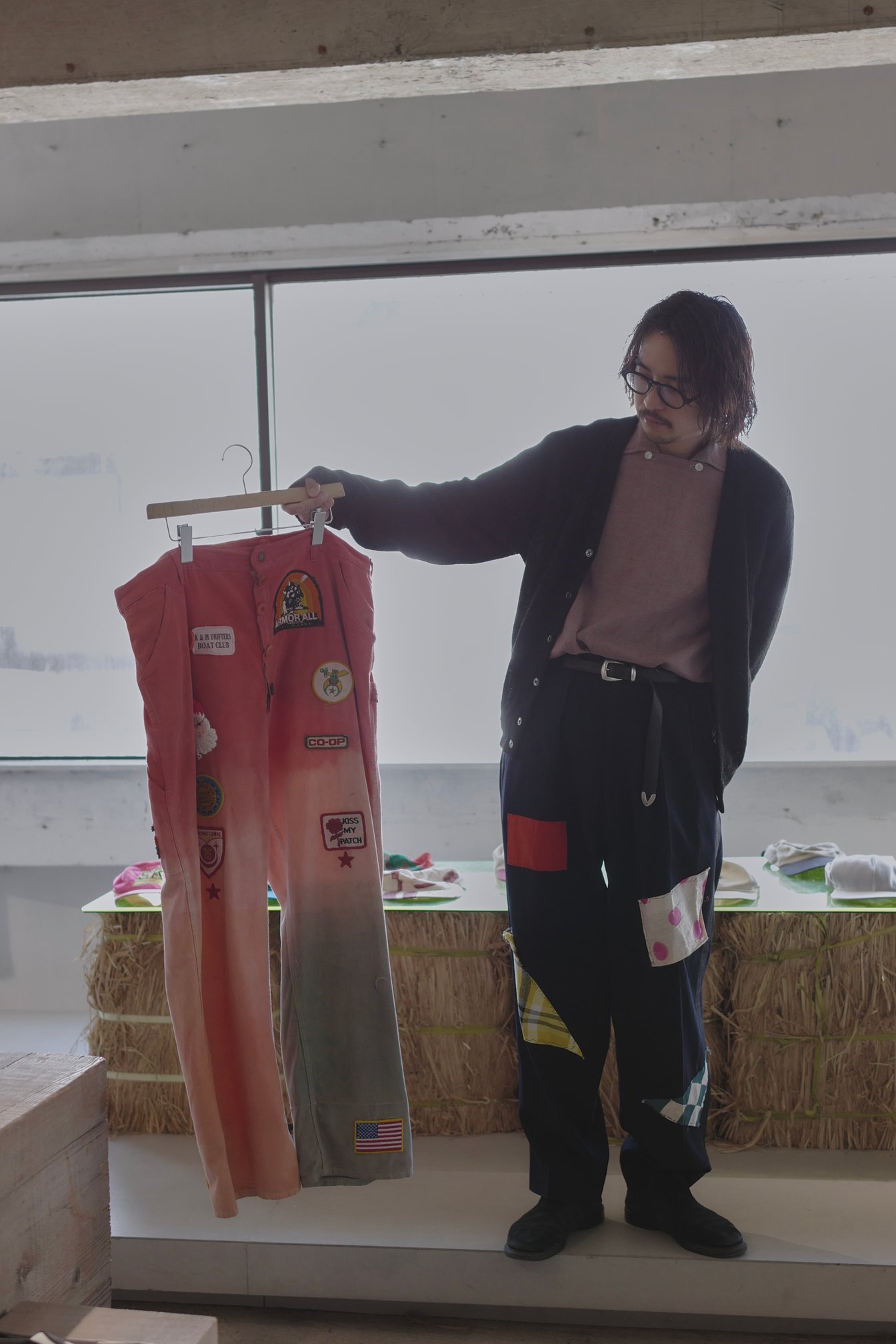 中でも特にイチオシだというアイテムが、古いピエロ用のパンツだ。複数のワッペンが無造作に縫い付けられており、その痕跡からは、パフォーマンスで使われていたであろう背景がたちのぼる。「量産的な古着よりも、こういう1点ごとの個性が強いものに惹かれます」。