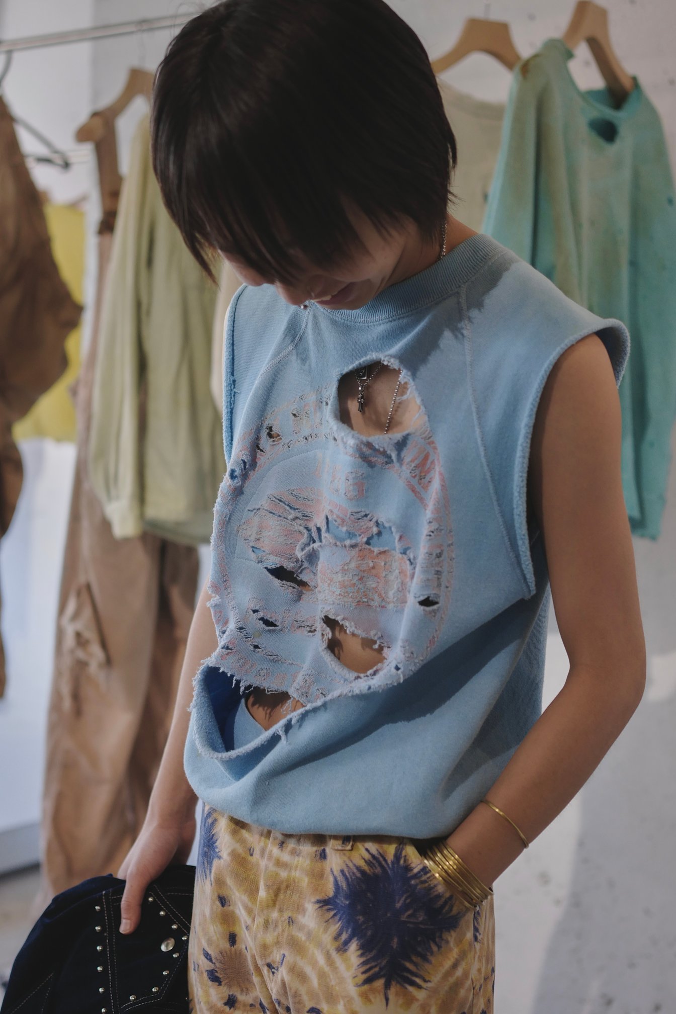 インナーの袖がカットオフされているボロタンクトップは、フリマで買い付け。昼すぎに見つけ即決したという。「結構他の日本人バイヤーもいたので、なんで誰も買っていないんだろうって不思議でした」(稲葉さん)