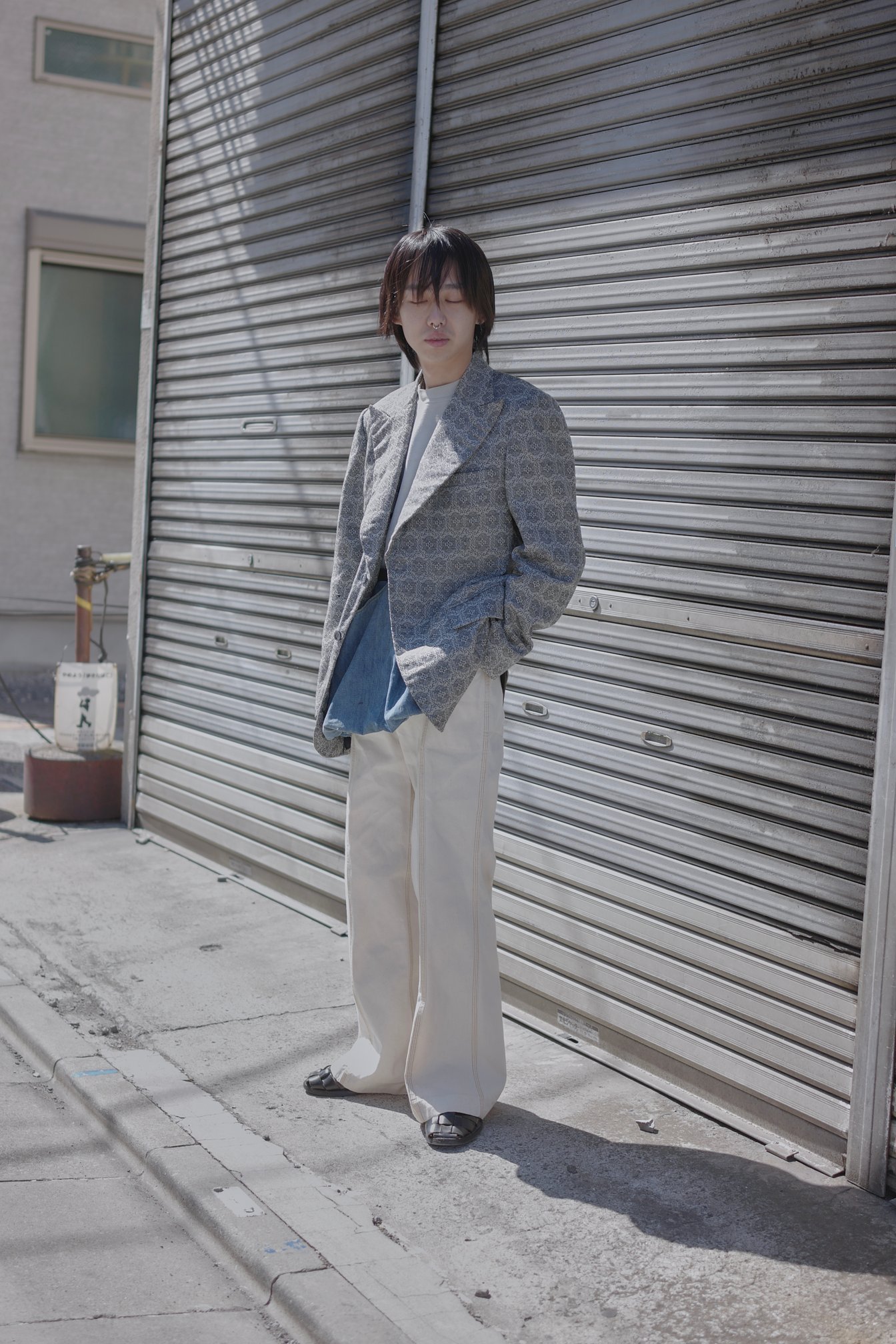 ヴィンテージファッションのトレンドに流されないYAURANのテンション感に合わせて、春先のムードに合わせたスタイリングを組みました。