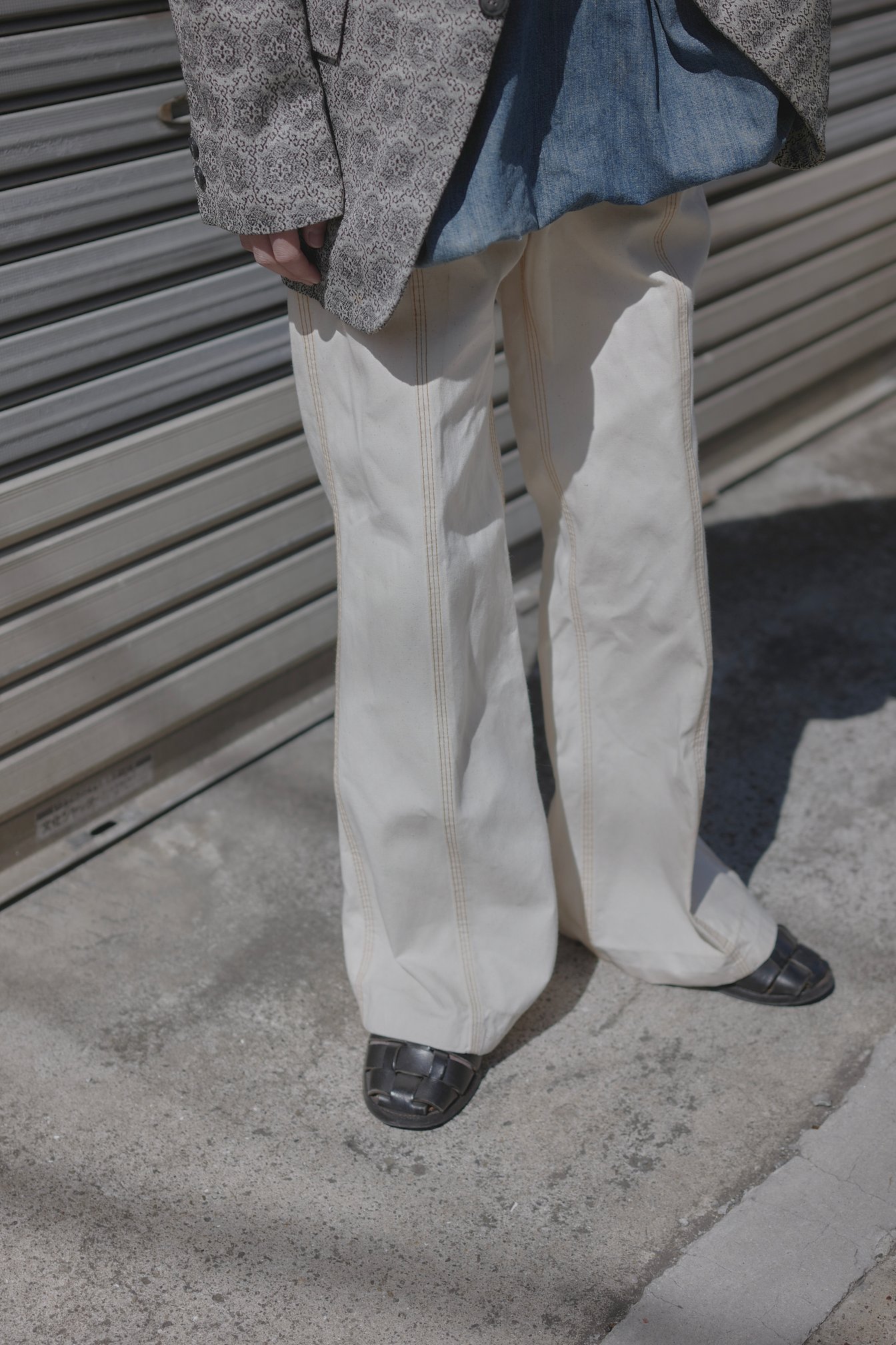 あとは、センターステッチの入り方も見逃せないですね。生成りの色味と相まって独特なムードでそこにも惹かれました。
