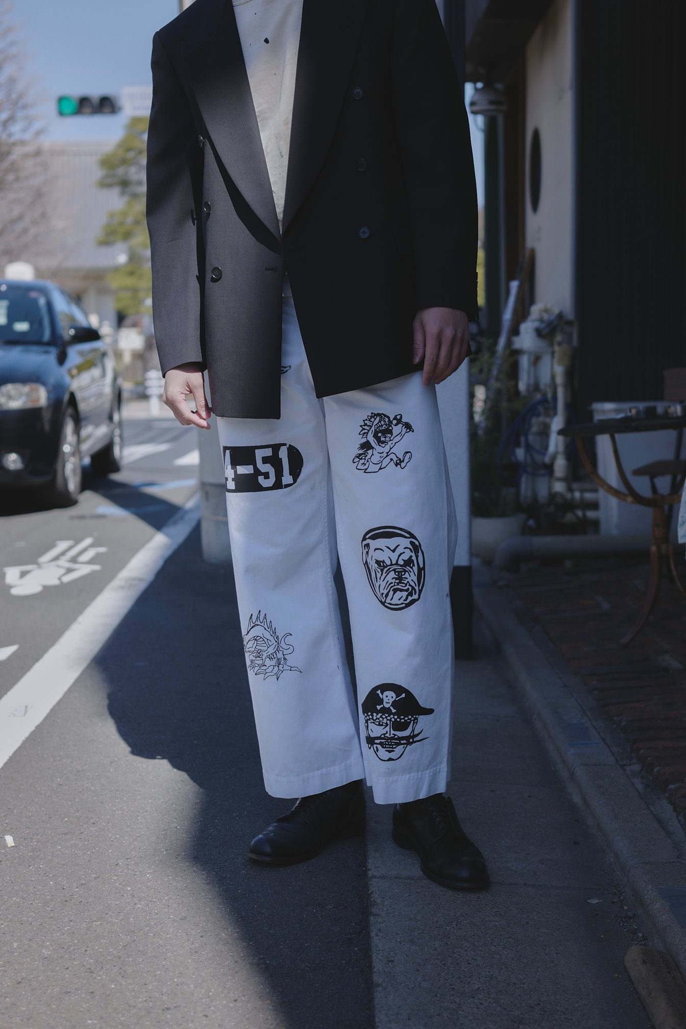 どちらも70sのアイテムですね。量産的な服作りへのシフトが進んでいった時代ではありますが、そうとは思えない、ニッチなデザインが魅力ですよね。トップスはクラシカルなニュアンスが強いものなので、新品のトラウザーなんかも合うと思います。