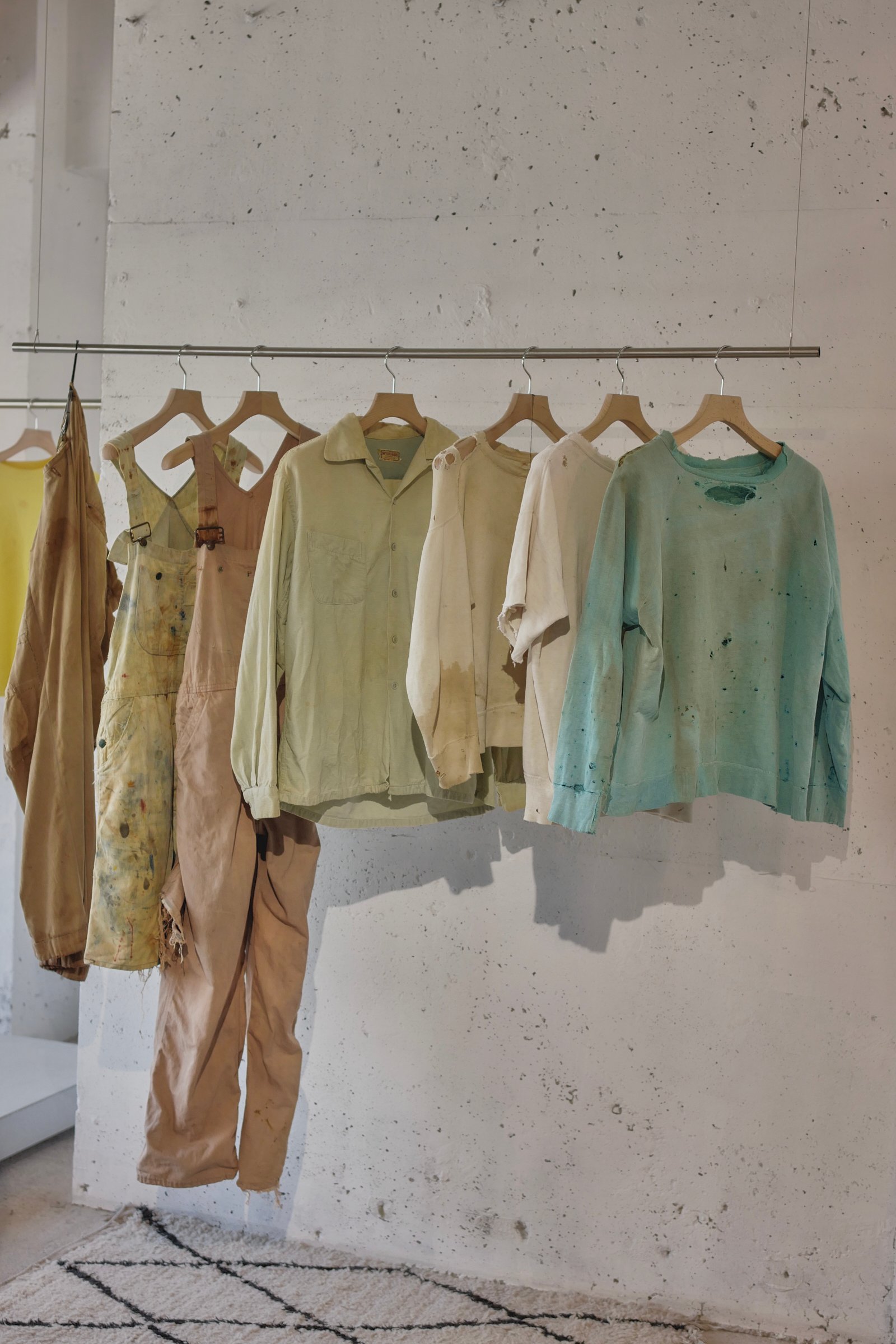 近年注目されつつもある“ボロ”古着についても独自の基準を持つ。メンズトラッドの文脈を踏まえ、シャツは基本的に選ばないほか、ダメージが恣意的か、偶発的かにこだわるという。「リンキングの弱い当時のものだからこそ首元が擦り切れているといったような、着続けた結果として自然に生まれたものがいい。作られたダメージはどうしても嘘っぽく見えてしまうし、複雑な気分になる」。ペンキ汚れにおいても同様で、“リアルさ”を追求して選んでいるという。