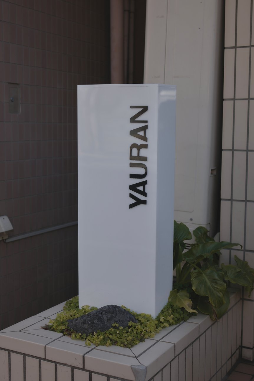 東急世田谷線・世田谷駅から区役所西通り沿いを駒沢公園通り方面へ歩くこと約3分。大吉寺に面した交差点を渡ると「ヨウラン(YAURAN)」の入居するビルに辿り着く。地域の名物老舗カフェ 「アンジェリーナ」のすぐそばの物件だ。外構に設置されているのは、白地に黒文字の店名を配した控えめな看板。重さのあるガラス製のドアを開け、階段を上がると、うちっぱなしの鉄筋コンクリートを基調とした、整然としながらも存在感ある空間が広がる。
