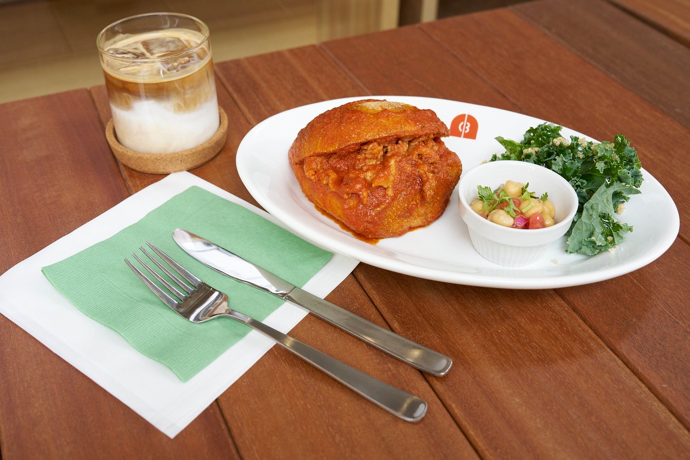 名物はポルトガルのストリートで愛されるトマト煮込みポークサンド「ビファーナサンド」。はじめて食べるはずなのに、なぜか懐かしさもある味。(1300円)
