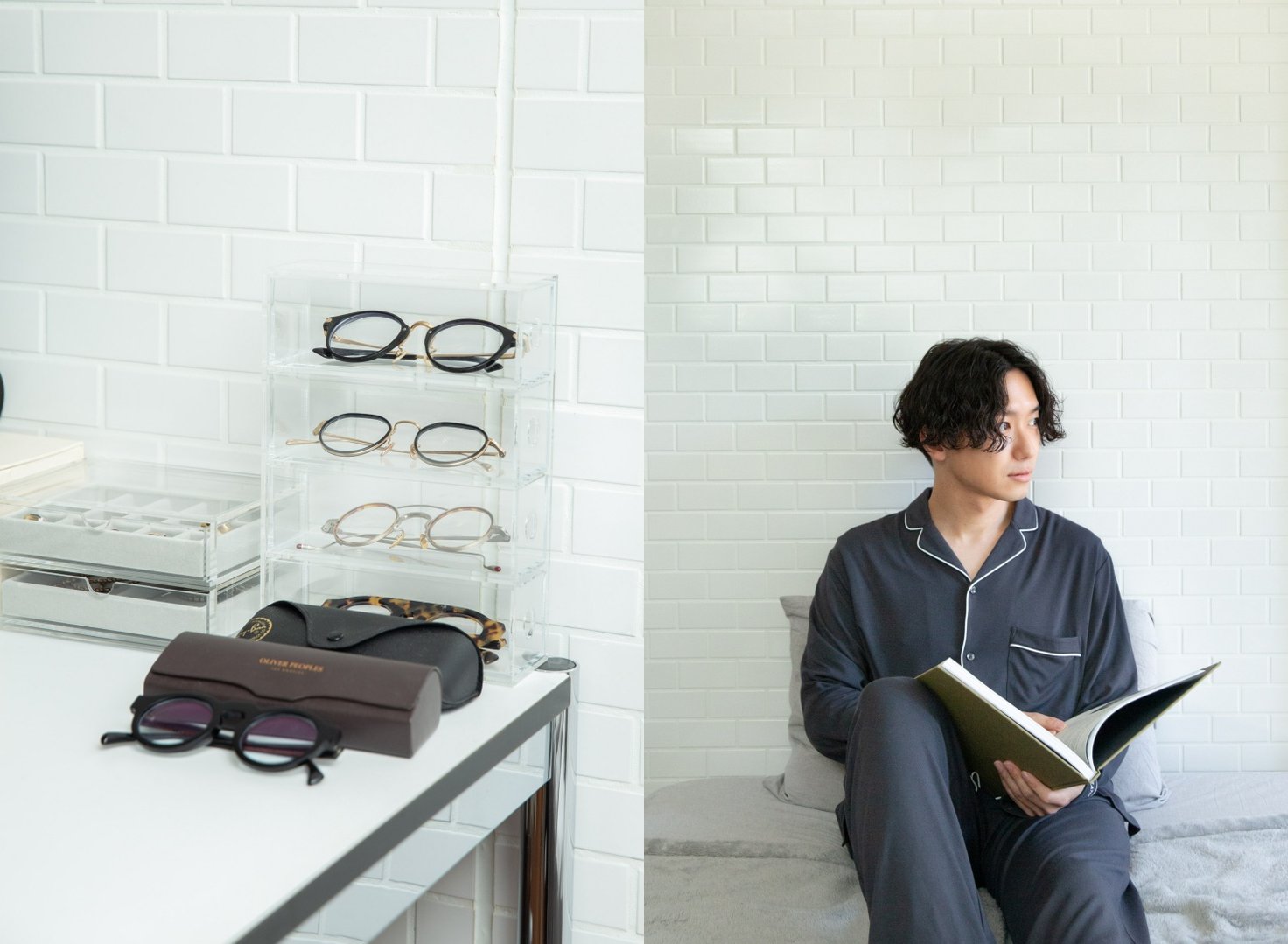 家で仕事をする時間が長いこともあり、オンオフいつでも快適に過ごせる空間にしたくて。仕事をするスペースは特にこだわっていて、デスクとチェアは以前から欲しかったものをセレクト。デスク周りにはキャンドルやお香など好きな香りを近くに置いていて、眼鏡はその日の気分や服のテイストに合わせて使い分けているので、さっと取り出せるようケースに入れて並べています。実は引っ越したばかりでまだ完成形ではないのですが、最終的にはモダンな家具で揃えた洗練された空間にしていきたいと思っています。