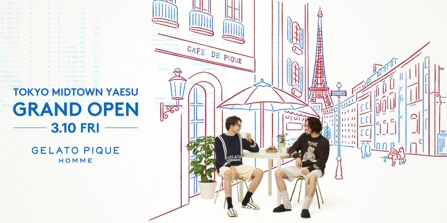 「ジェラート ピケ オム(GELATO PIQUE HOMME)」初の単独店舗が3月10日、新商業施設「東京ミッドタウン八重洲」にオープン。モダンなデザインやカラーリングで大人の男性に向けたアイテムをラインナップ。春夏の新作ルームウェアをはじめ、この店舗でしか買えない限定アイテム、夫婦やカップルでも楽しめるユニセックス商品を取り揃えます。