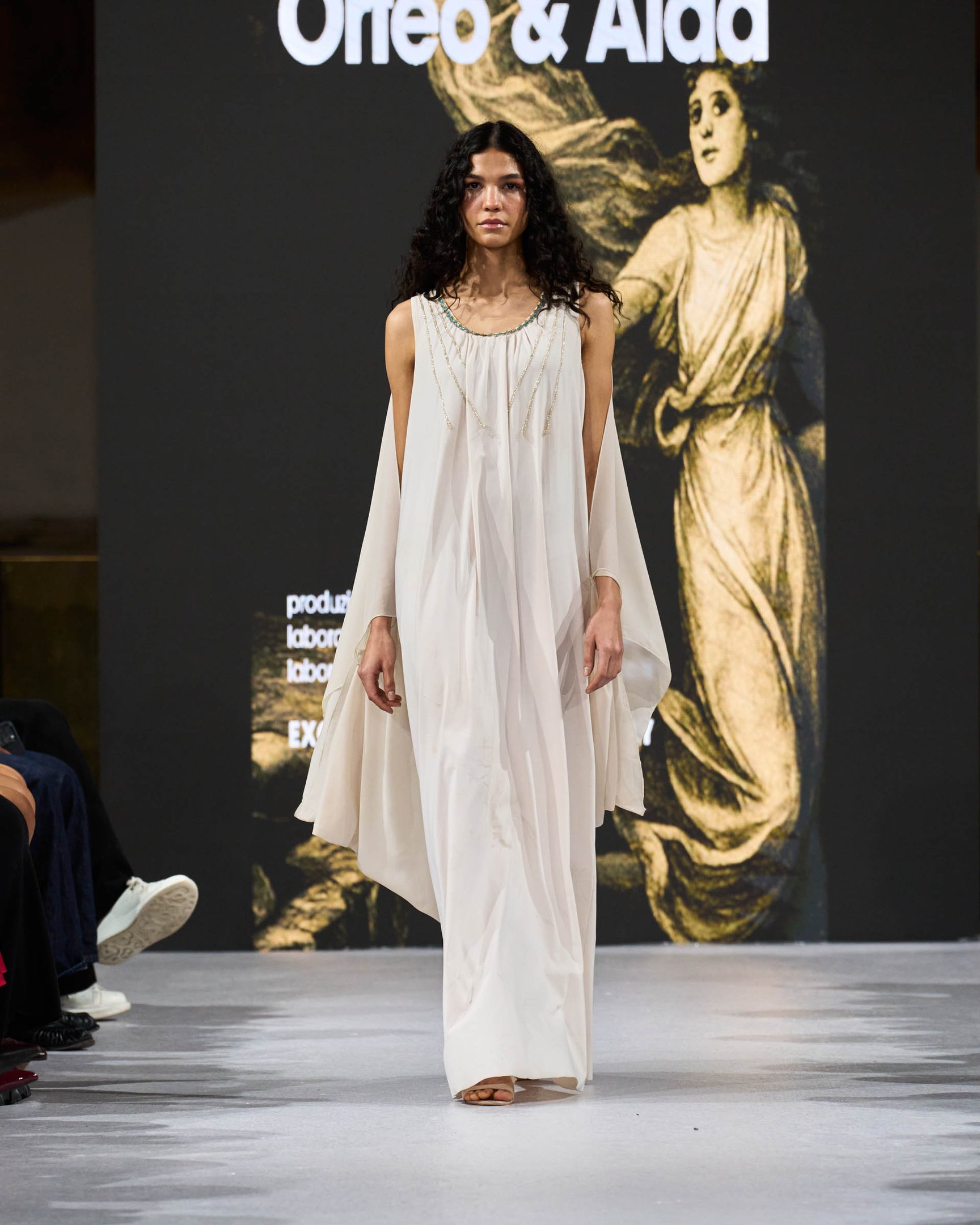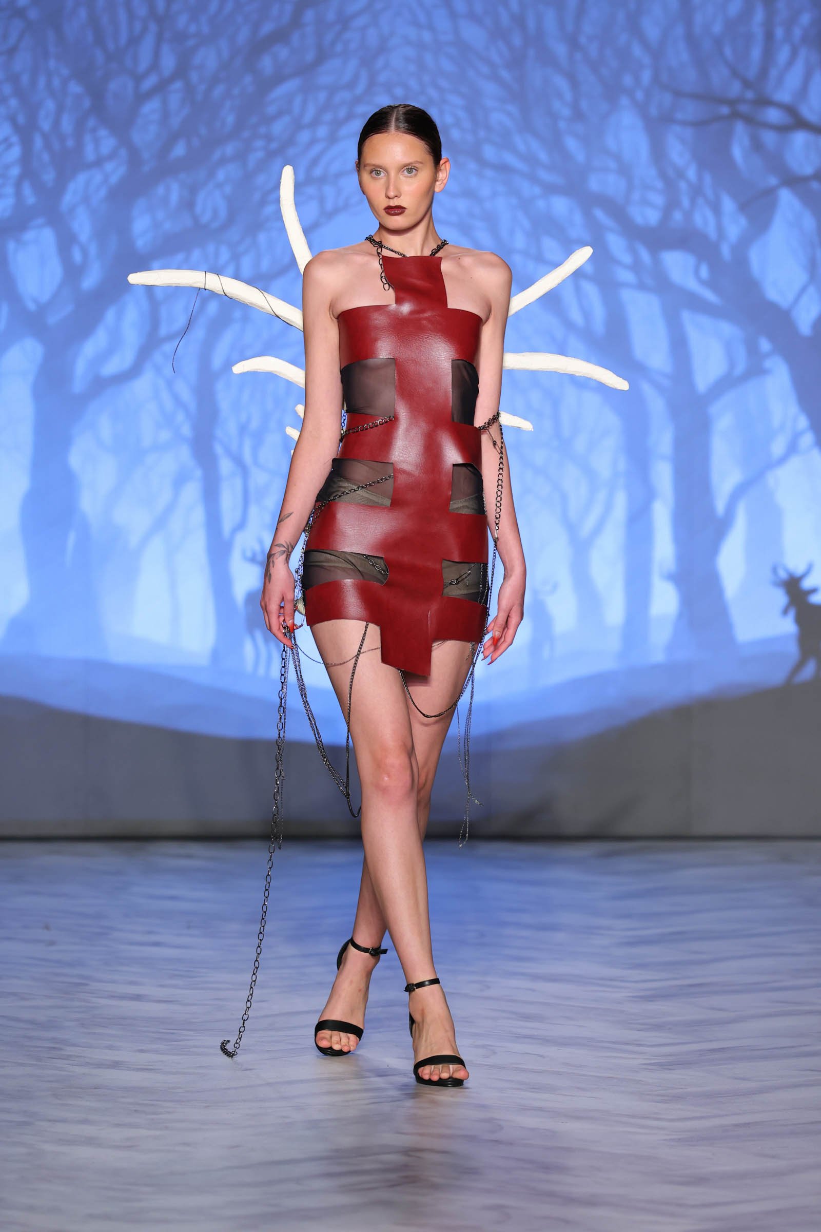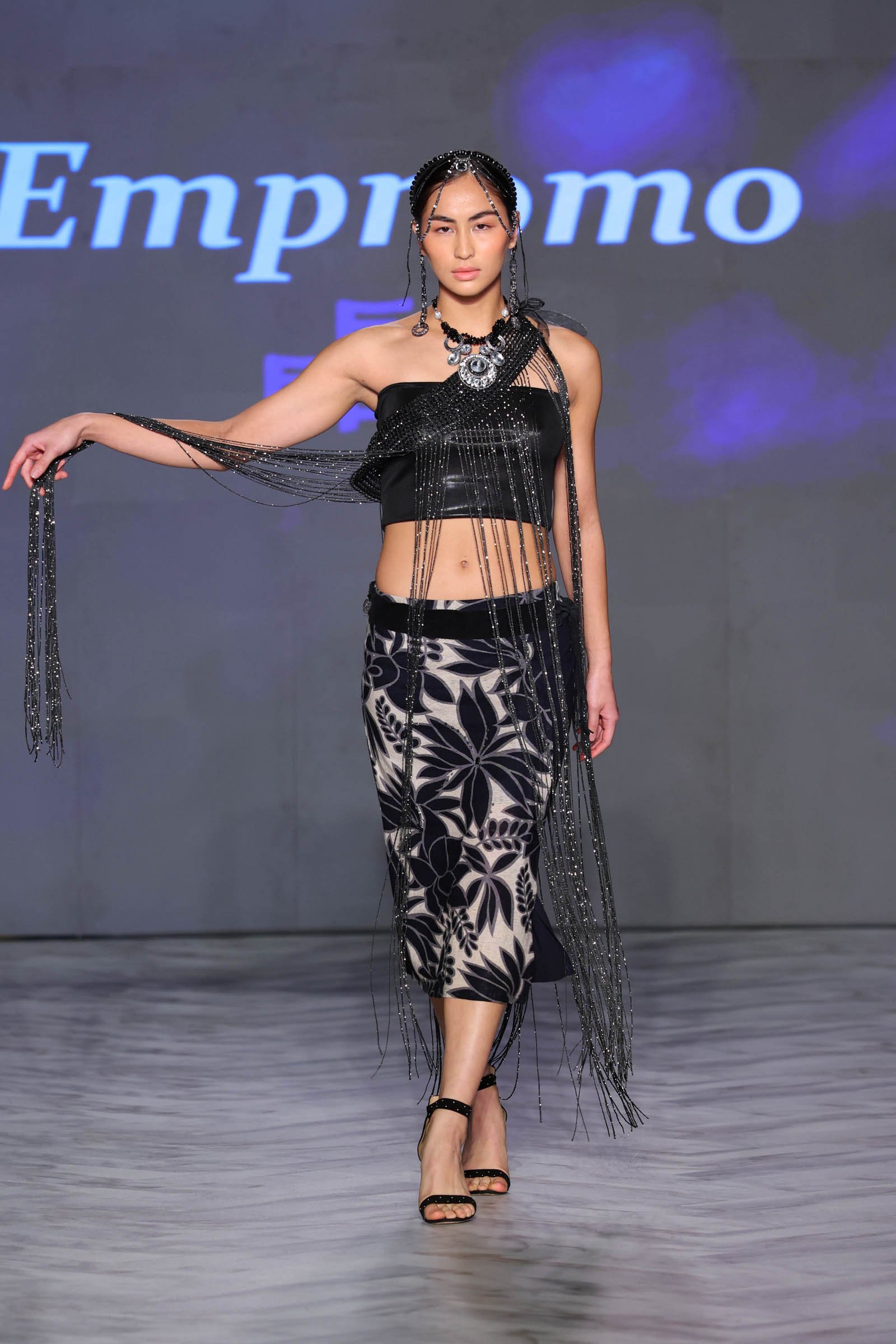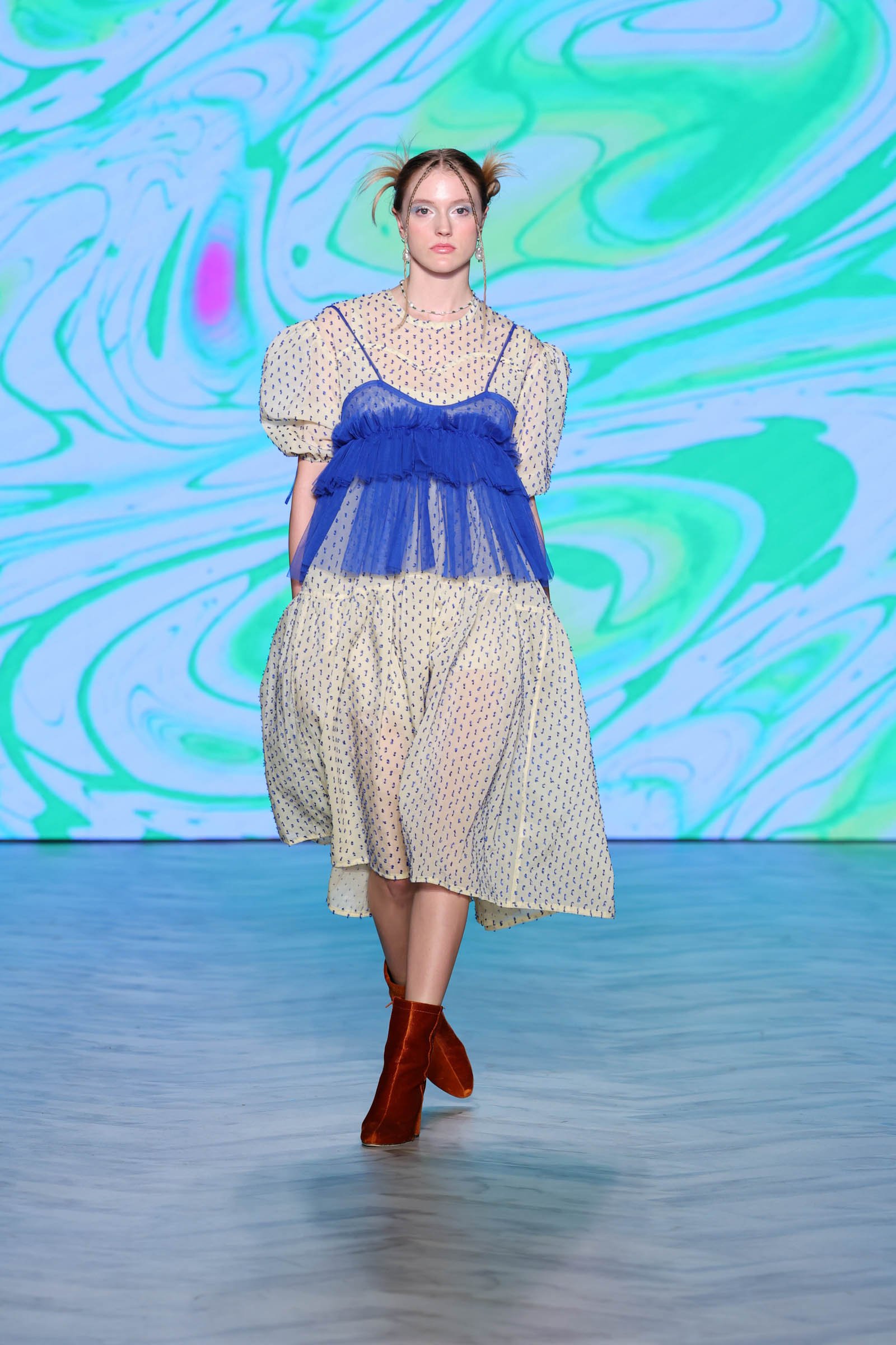 メキシコのデザインスクール「CEDIM」は、7人の新進デザイナーによる共同コレクション「PLAY」を発表。幼少期の遊びや身体感覚を手がかりに、創造の原点を多面的に探る試みが目を惹く。ランウェイでは、誇張されたボリュームで衝動を可視化したルックや、布を連ねて記憶の堆積を表現したドレスなど、多彩なアプローチが並んだ。遊びを「再生」や「抵抗」の視点から捉え直した解釈が造形に落とし込まれ、複数デザイナーの集合体でありながら一貫したテーマ性を保っている。異なる表現と一貫した視点が共存し、新世代による想像力の広がりを感じさせるコレクションとなった。