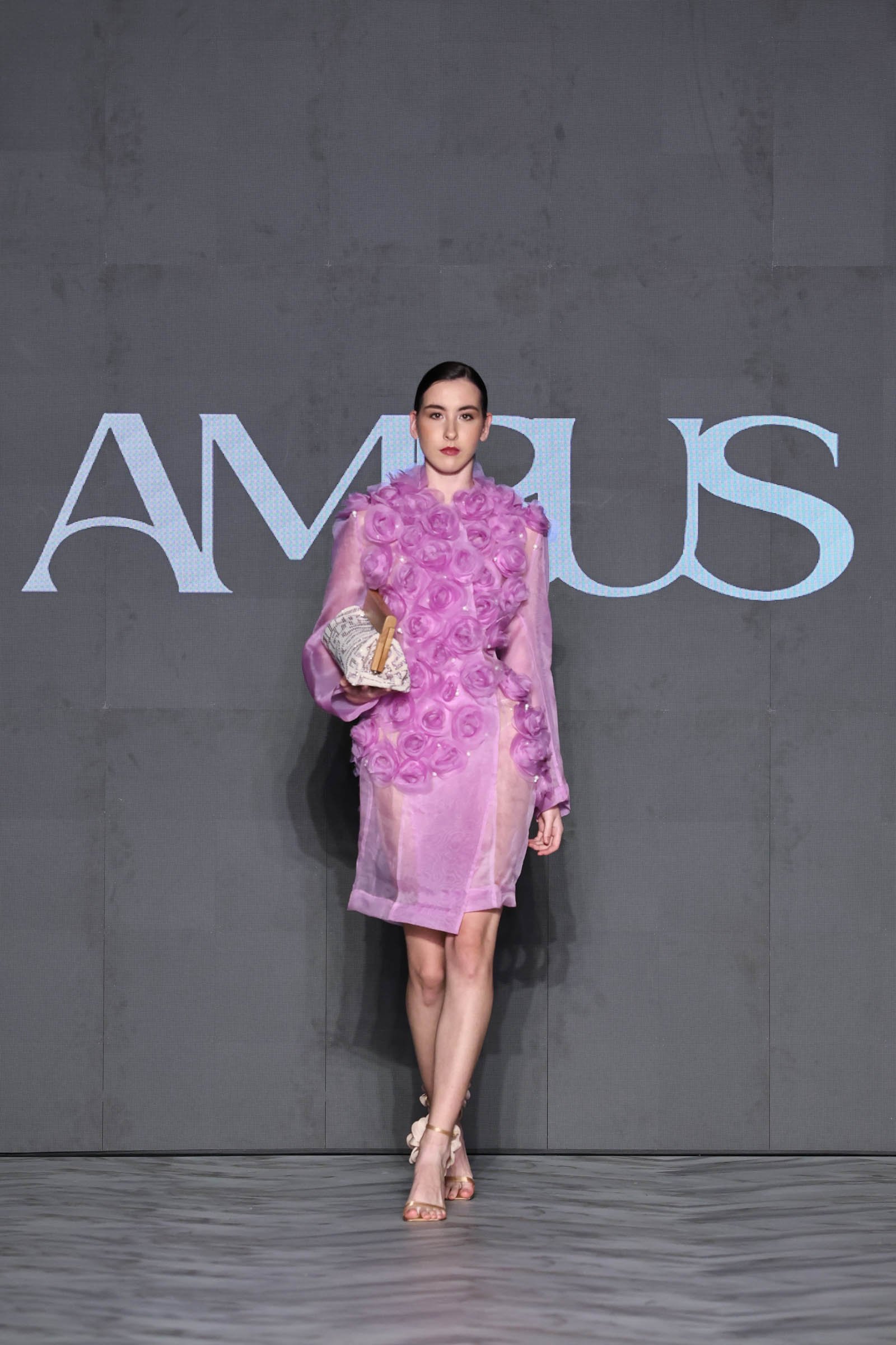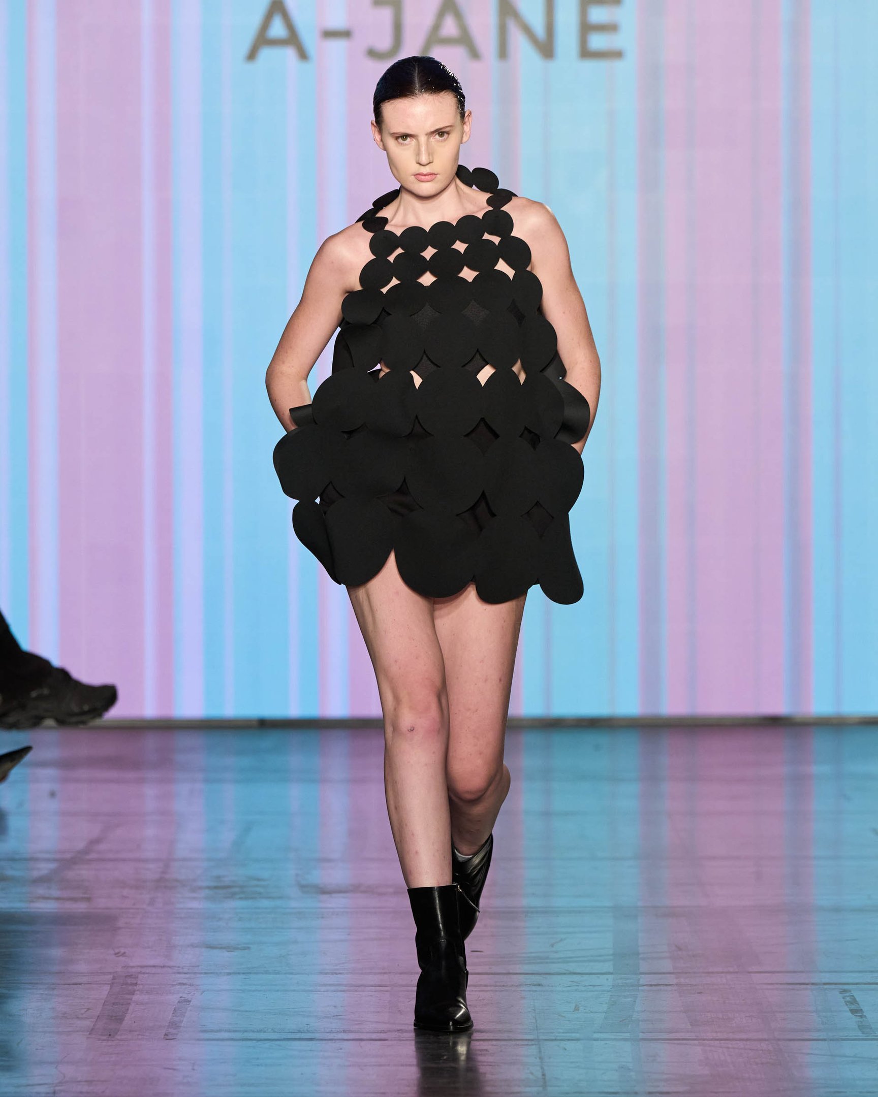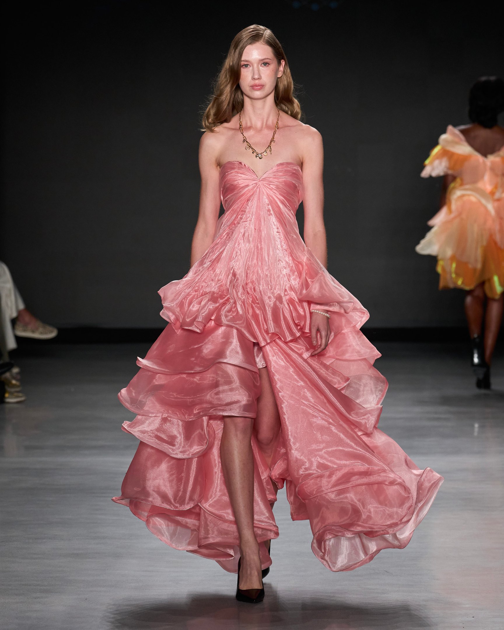 「Recolored」と題し“再生”をテーマに、内に秘めたエネルギーを立体的なフォルムへと昇華したアシュリン・ソー。サンゴ礁から着想を得た色彩と質感のグラデーションは、ダイナミックなボリュームとともに躍動し、生命の息吹を感じさせる。14歳でデビューを果たした若きデザイナーが描くのは、社会的な圧力や同調によってすり減った感情の解放。壊れやすいものを慈しみ、自分らしさを肯定するようなメッセージがショー全体に息づいている。