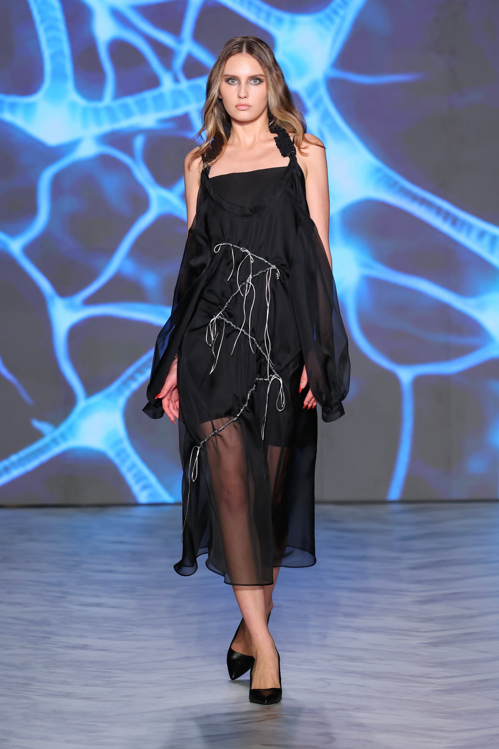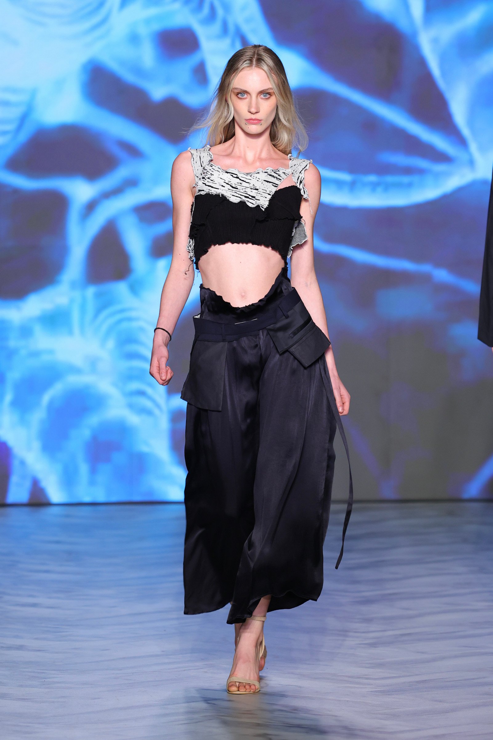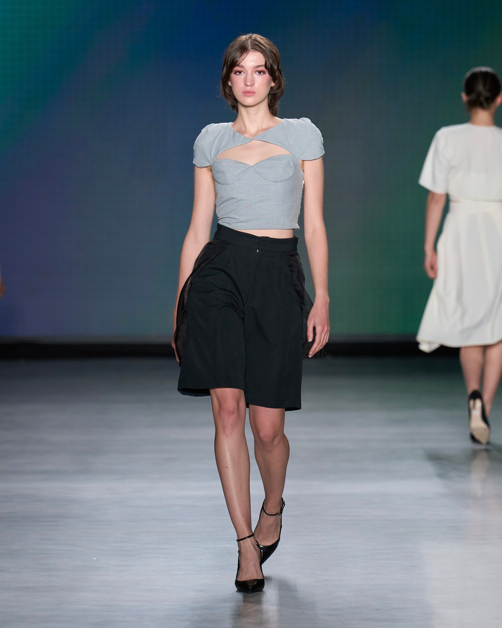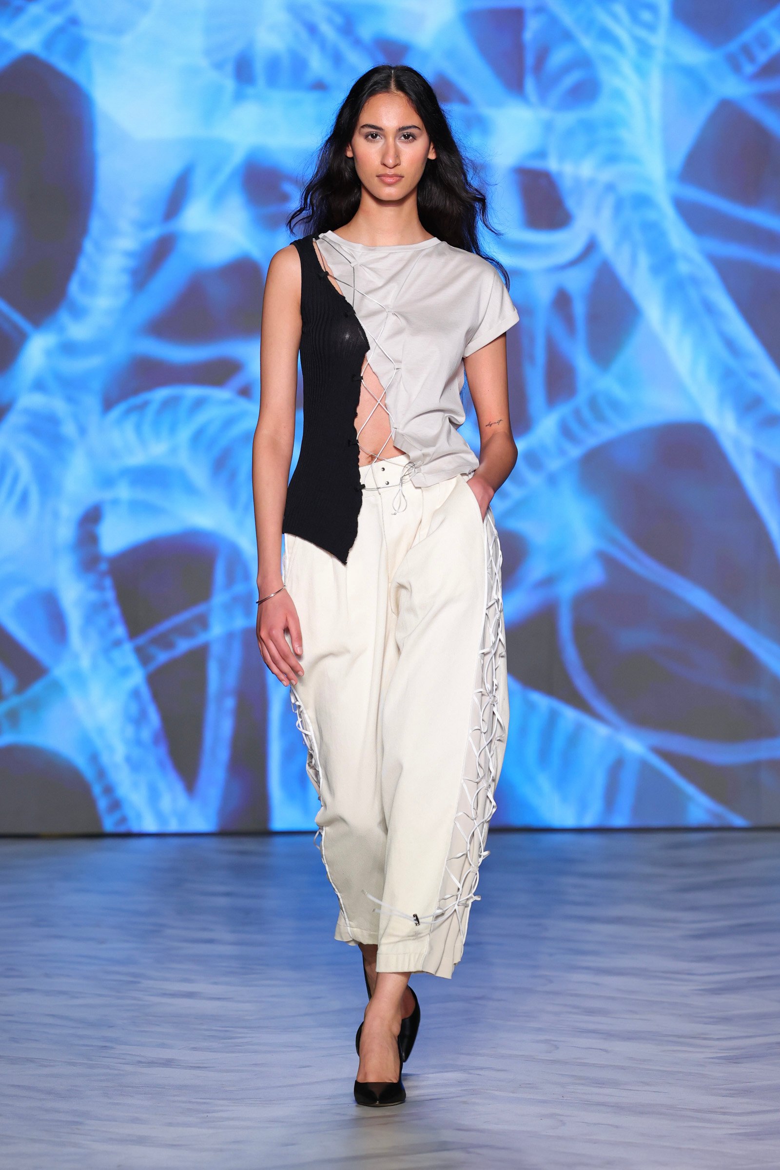 ニューヨークでデビューを飾ったウェニー・ハンは、ミニマルでありながら、ひねりをきかせたカッティングや、巧みなレイヤード、美しいフォルムで鮮烈な印象を残した。中国生まれ、カナダ・アメリカ育ちというグローバルな背景を持ち、異なる文化の美意識を織り交ぜた服は、アートピースのような存在感と洗練された実用性を併せ持つ。個の内面を造形として可視化するコンセプチュアルなアプローチで、次世代の新たな感性を提示した。