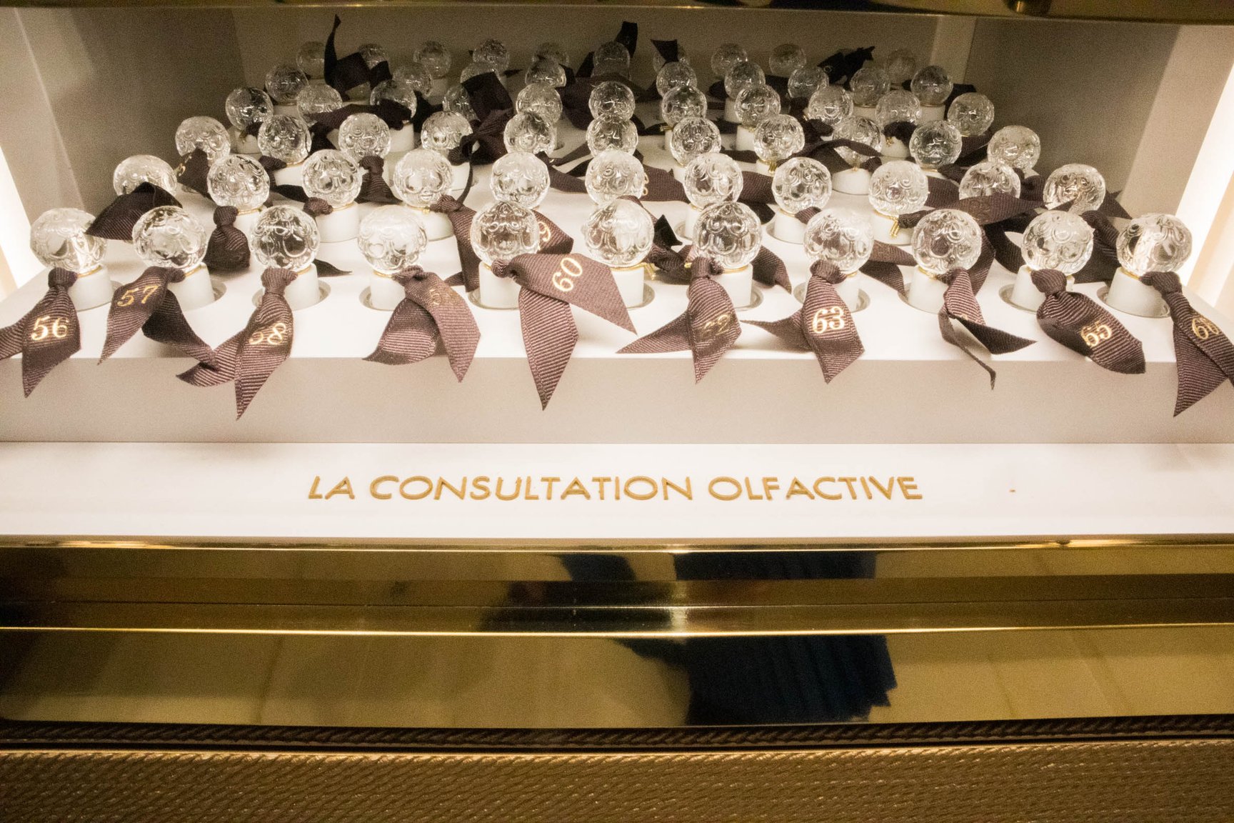 同店では2つのパーソナライゼーションサービスを用意。ひとつ目は、スペシャリストが気分や好みに合わせた香りを提案する、一部の店舗限定のフレグランスコンサルテーション。タブレットで香りのタイプやイメージといった質問に答えると、スペシャリストが約60種類のフレグランスの中から最適な香りを選んでくれます。ずらりと並ぶ香水の中から好みに合うものを選ぶのは至難の技。そんな時はプロの力に頼るのがおすすめです。