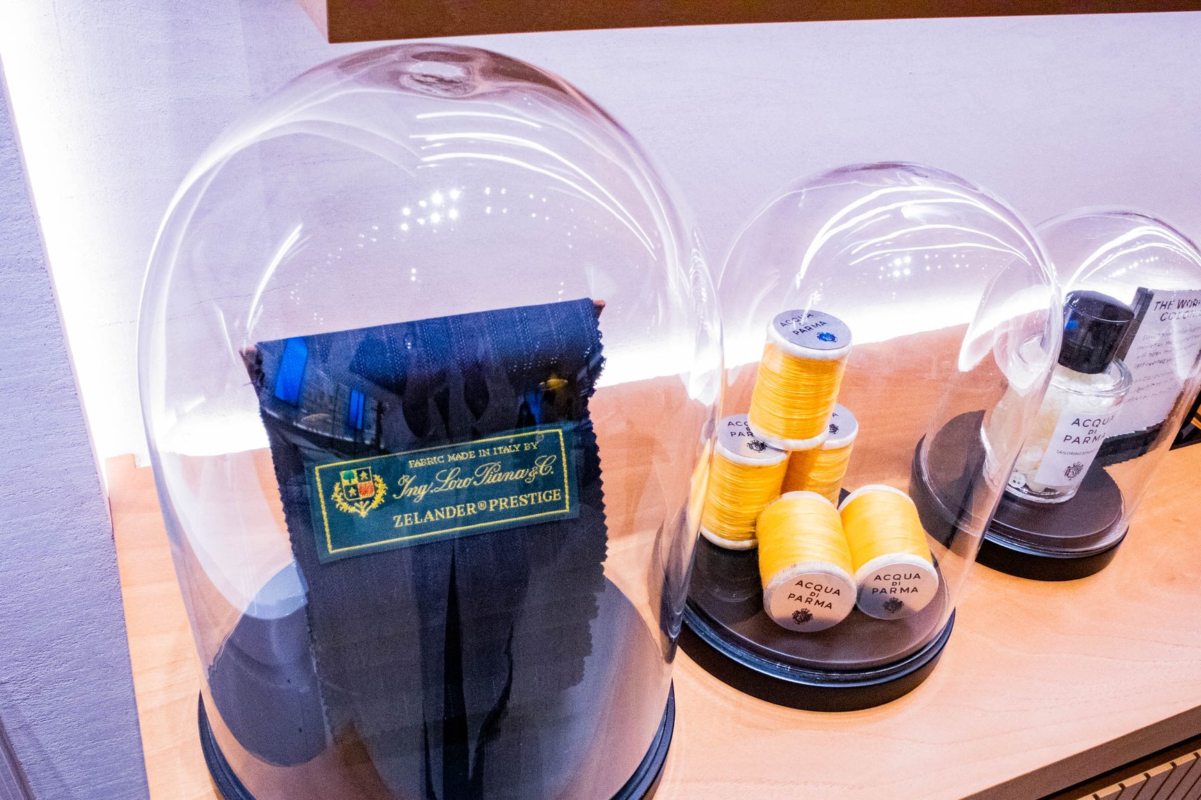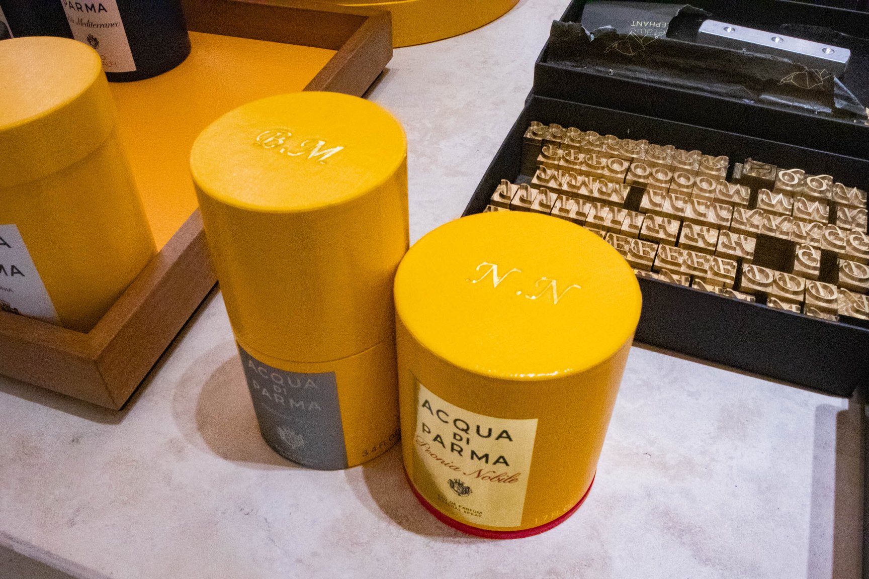 シチリアのシトラスフルーツを使ったブランドの象徴的な香り「コロニア」をはじめ、地中海でのバカンスをイメージした「ブルー メディテラネオ」や、厳選した香料にフォーカスした濃密な香り「シグネチャー オブ ザ サン」、ローズ、ピオニー、マグノリアのフローラルノートを取り入れた華やかな香り「ノービレ」の4つの代表的なコレクションのほか、オペラの有名曲にオマージュを捧げた「ノート ディ コロニア」や、シェービングケア、ボディケア、ヘアケア、ホームコレクションなど、国内最大の商品数を用意しています。同店限定で、ブランドオリジナルの刻印機を用いてボックスにイニシャルを刻印するエングレービングサービスを提供。