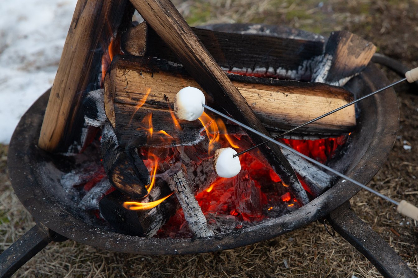 到着からしばらくして、本館前では焚き火サービスが。こちらでは飯綱町の名産であるりんごをストウブでベイクしたり、マシュマロを焼いたりしてアウトドアの醍醐味を満喫。