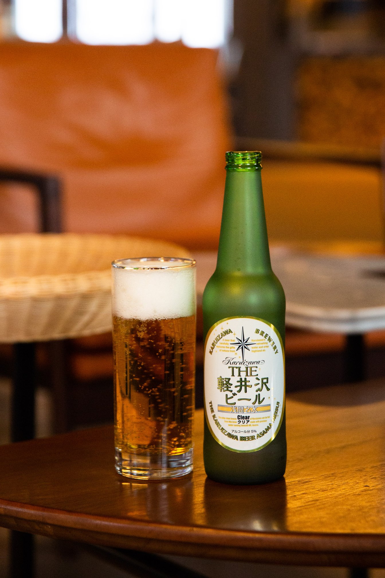 まず、到着して荷物をほどいたらラウンジで地ビール「軽井沢ビール」を一杯。ドリンクはビールのほか、ジュース、コーヒー、紅茶類がセルフで飲み放題です。