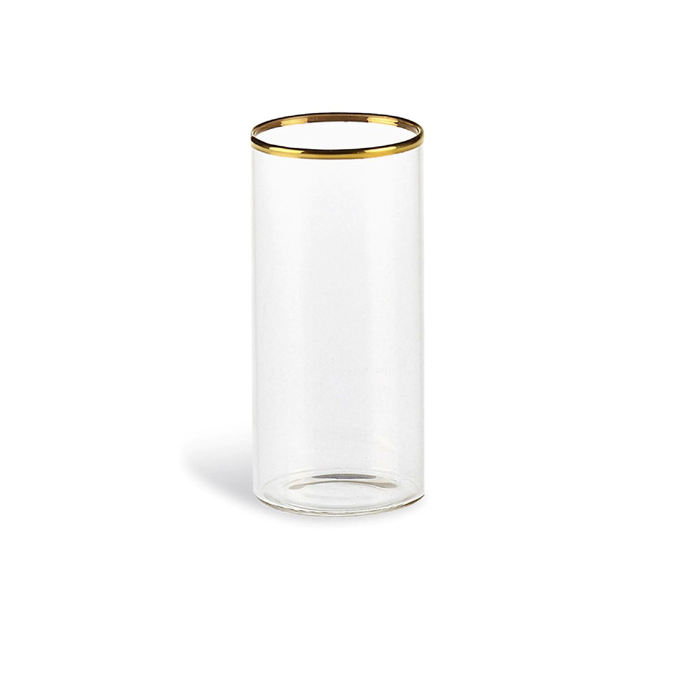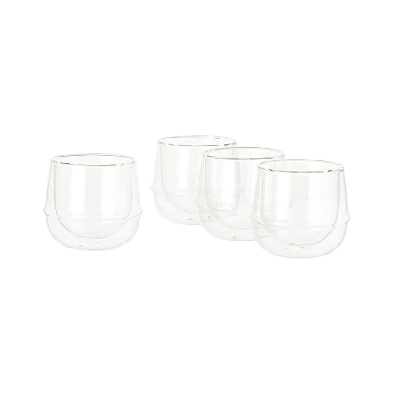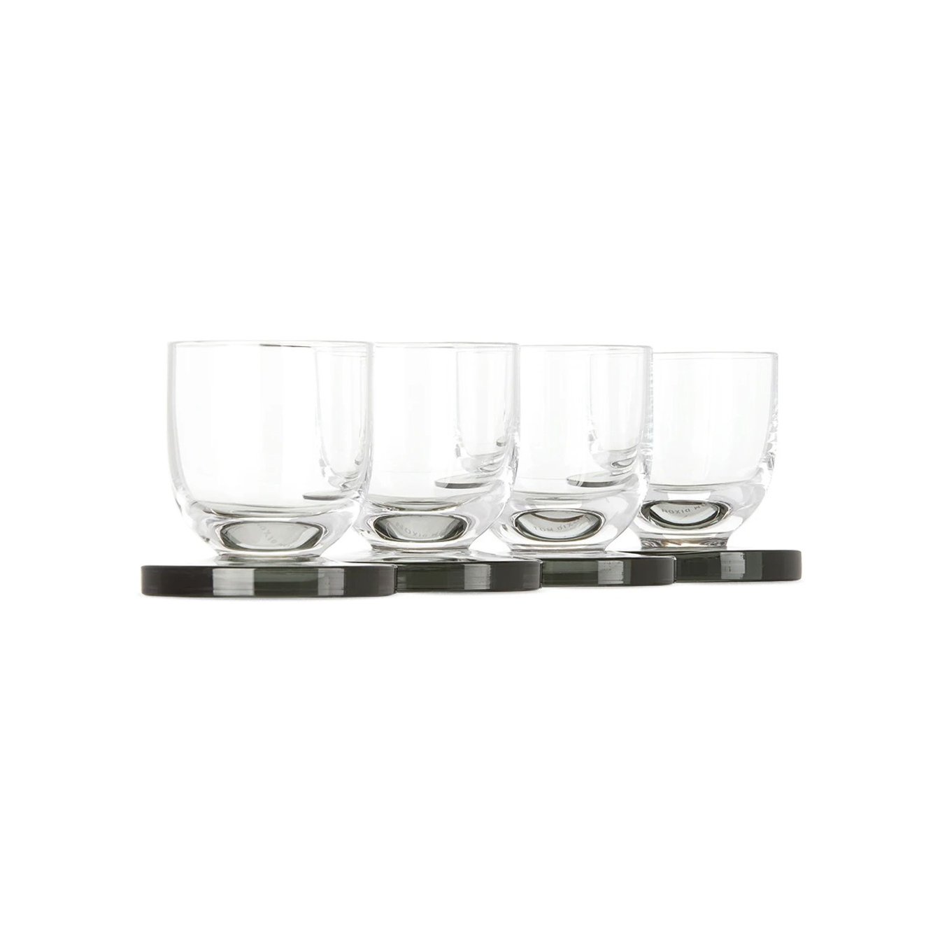 ひとつめにご紹介するアイテムは、「トム・ディクソン(TOM DIXON)」の4個が1セットになったこちらのグラス。コンパクトなサイズながら、ドリンクを入れてテーブルに置いておくには十分な容量と、ぬるくなる前に飲み切れる嬉しいサイズ感。デザインのアクセントにもなっている安定感抜群のアートなステム(土台)は、アイスホッケーのパックからインスピレーションを得たそう。ディナータイムには、食前酒や日本酒、ソースや冷製スープを入れて楽しんでも◎。