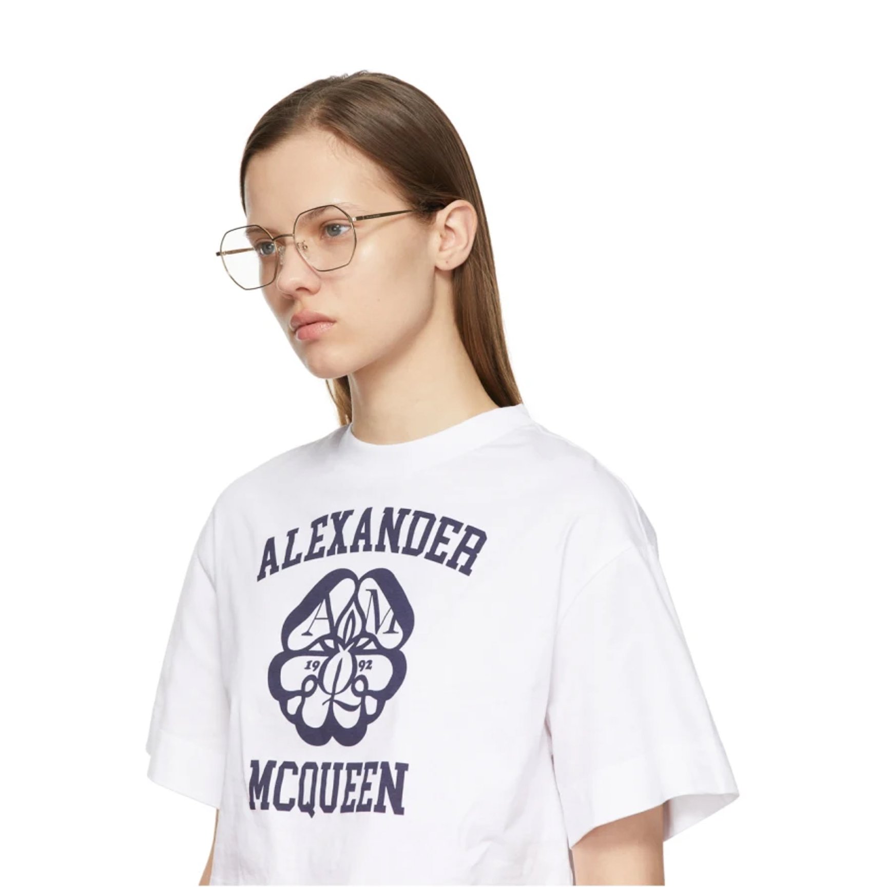 「アレキサンダー マックイーン(Alexander McQueen)」のヘキサゴンシェイプのメガネ。一見 難しそうなデザインながら、メタルフレームなので主張は控えめです。顔馴染みの良さにヘビロテしてしまうはず。