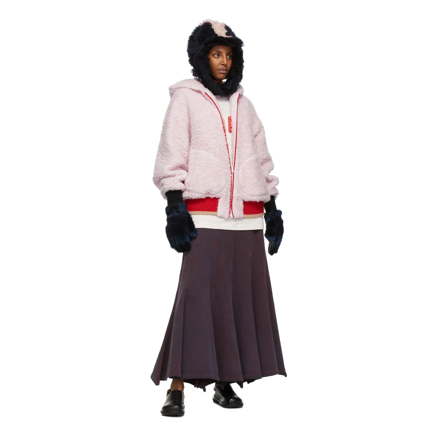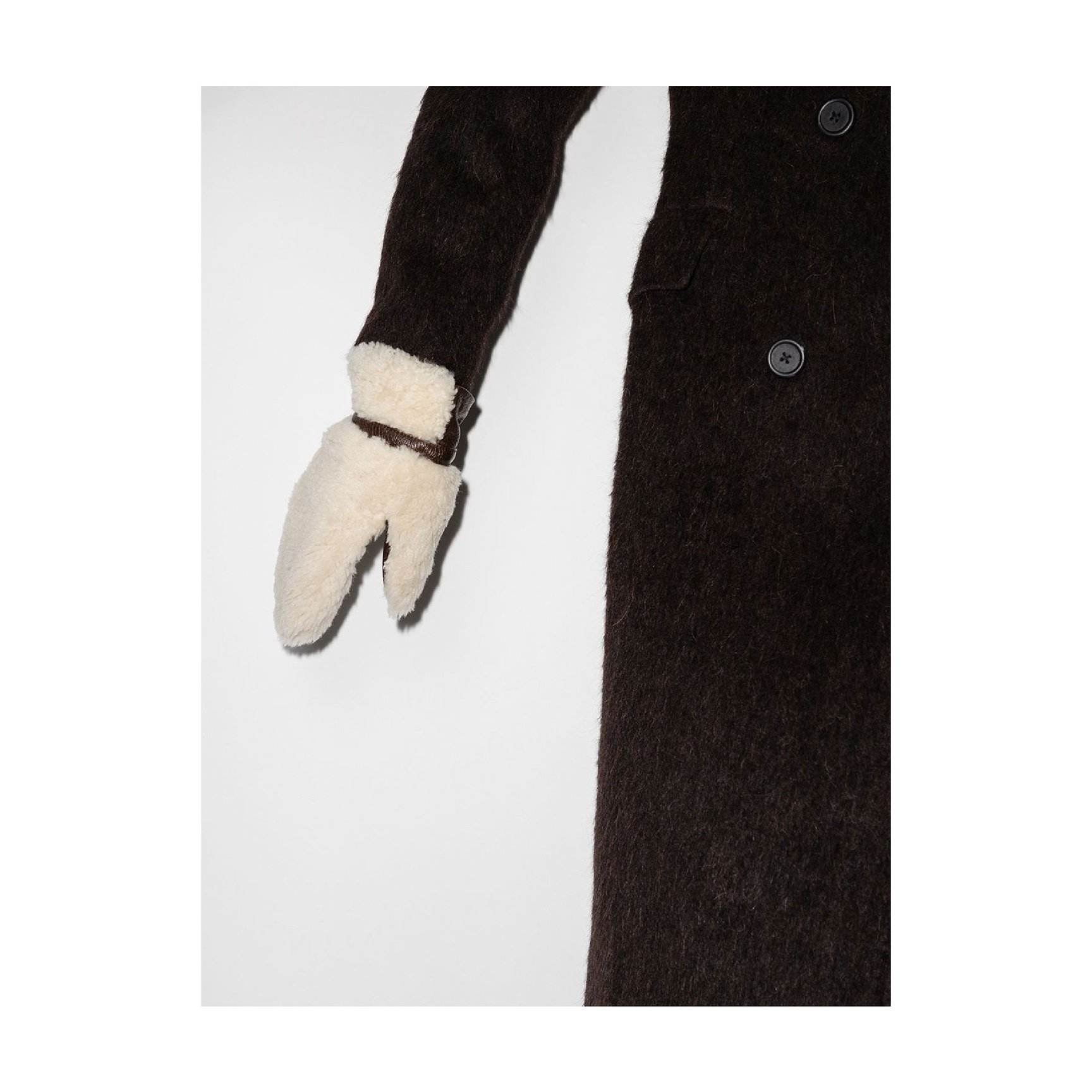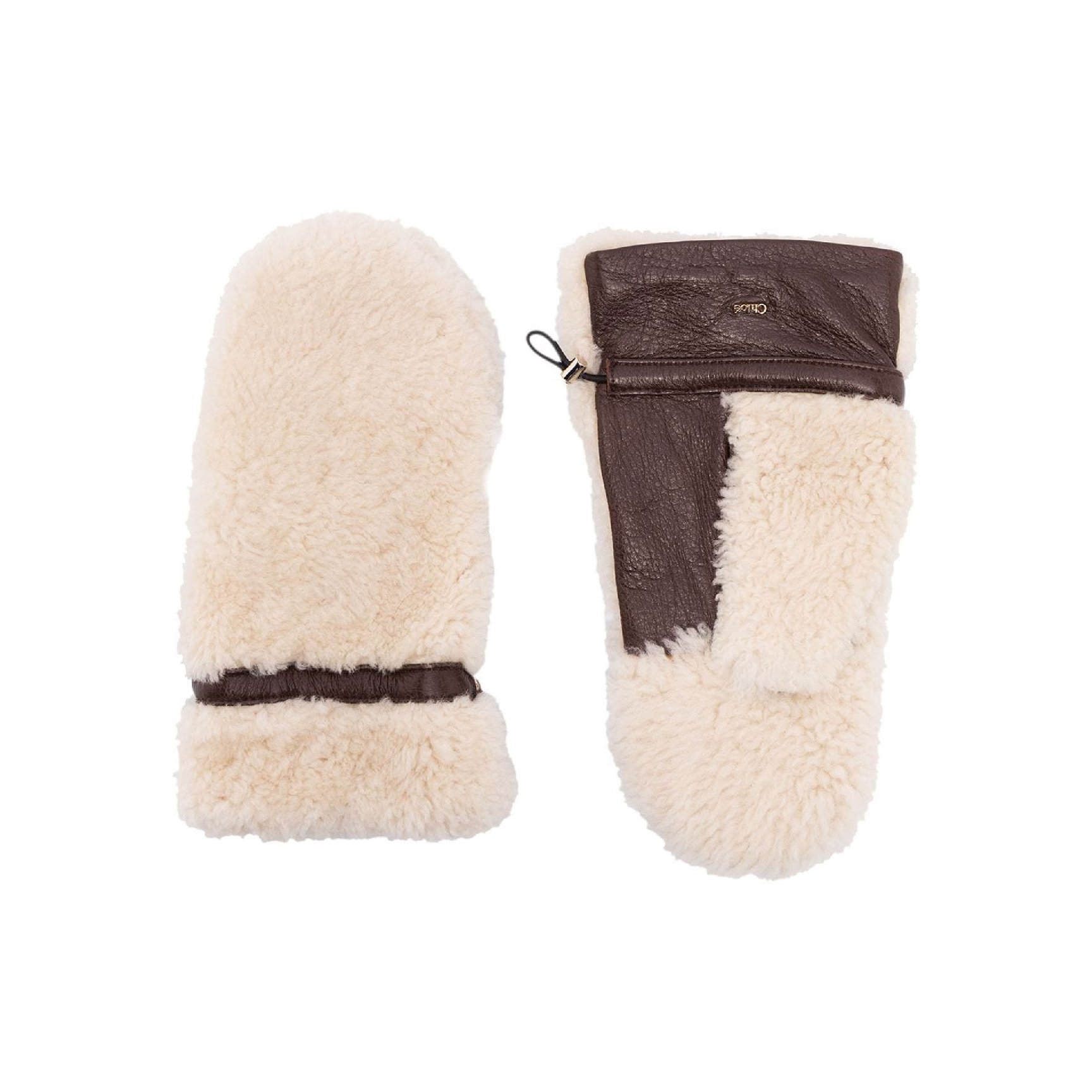 「クロエ(Chloé)」のもこもこミトンは、上品なルックにぴったり。表地の素材はシープスキンとレザー100%、裏地はカシミア100%と高級素材をふんだんに使っている手袋です。ボリューム感たっぷりで、手元にかわいらしい印象を与えます。装着時、手首部分にくる「クロエ」のロゴプレートがワンポイント。