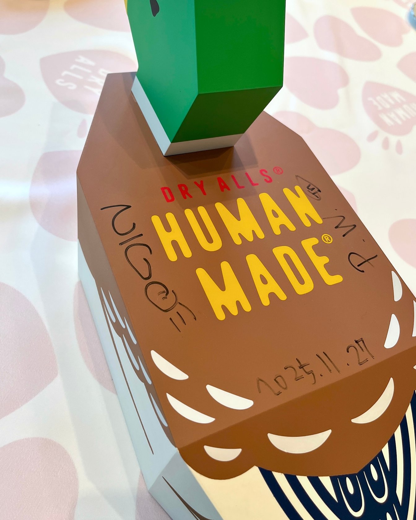 カモのオブジェに日付とともに施されたNIGO®︎とファレルの記念のサイン
