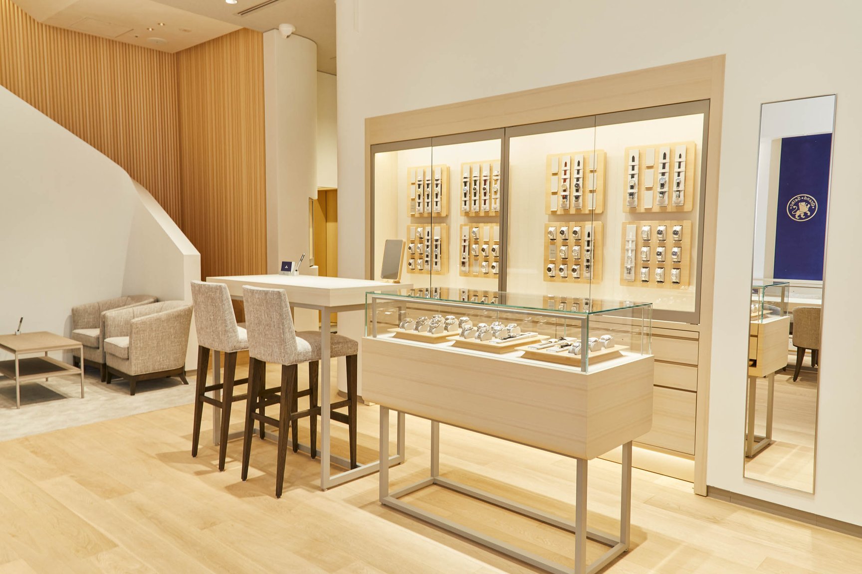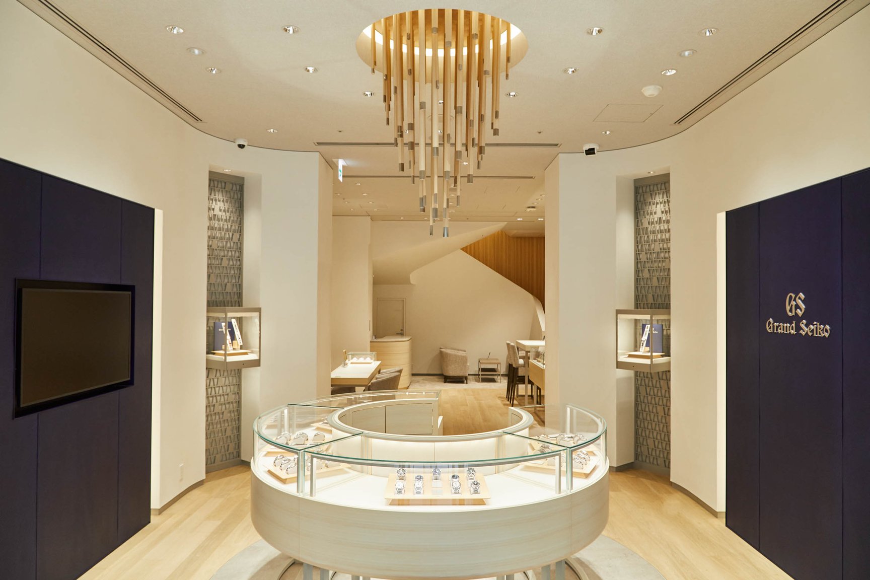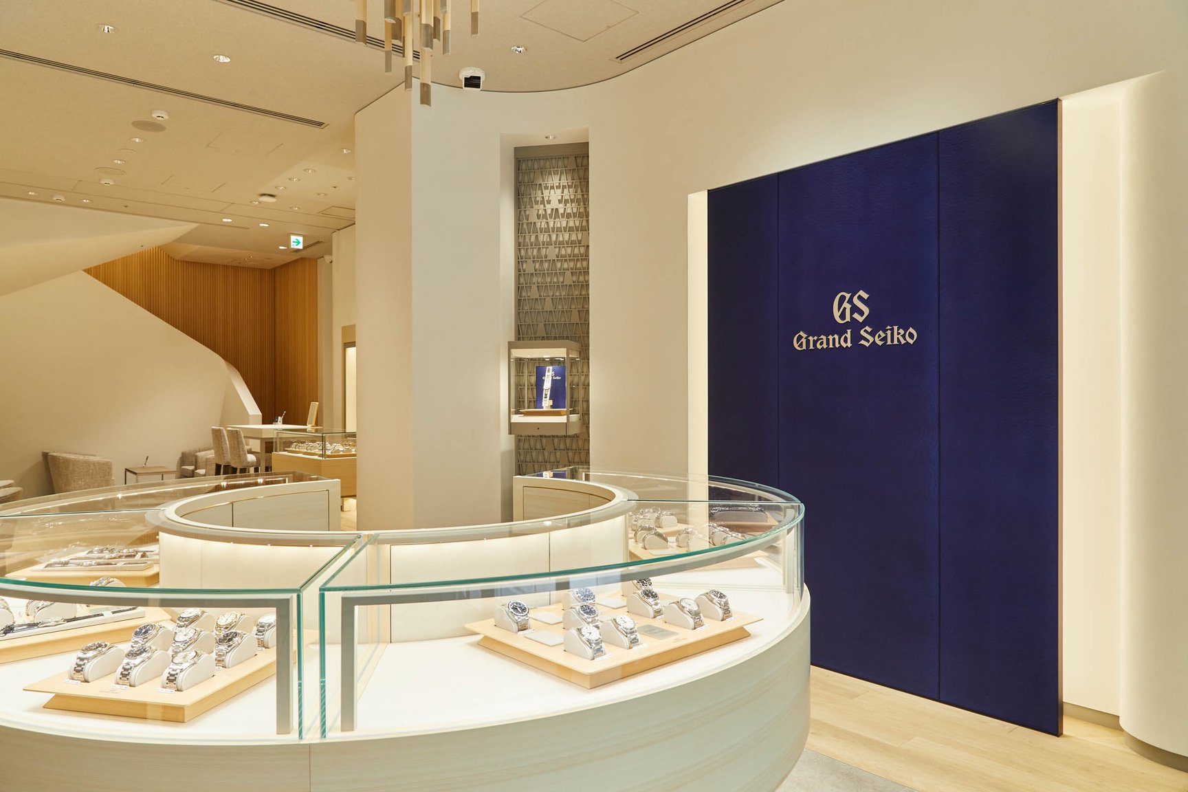 新ブティックは「自然の中に感じられる時や季節の移ろい」「時の本質の追求」という2つの要素を併せ持つブランド哲学「THE NATURE OF TIME」をもとに設計し、現代的で軽やかな装いでグランドセイコーが掲げるメッセージ「今、この時を生きる人へ。 Alive in Time」を体現。現在から未来へと続くグランドセイコーの魅力と日本の美意識を発信する拠点として展開する。商品展示と接客コーナーに加え、ラウンジやサービスカウンターを設けてロイヤリティの向上を図る。