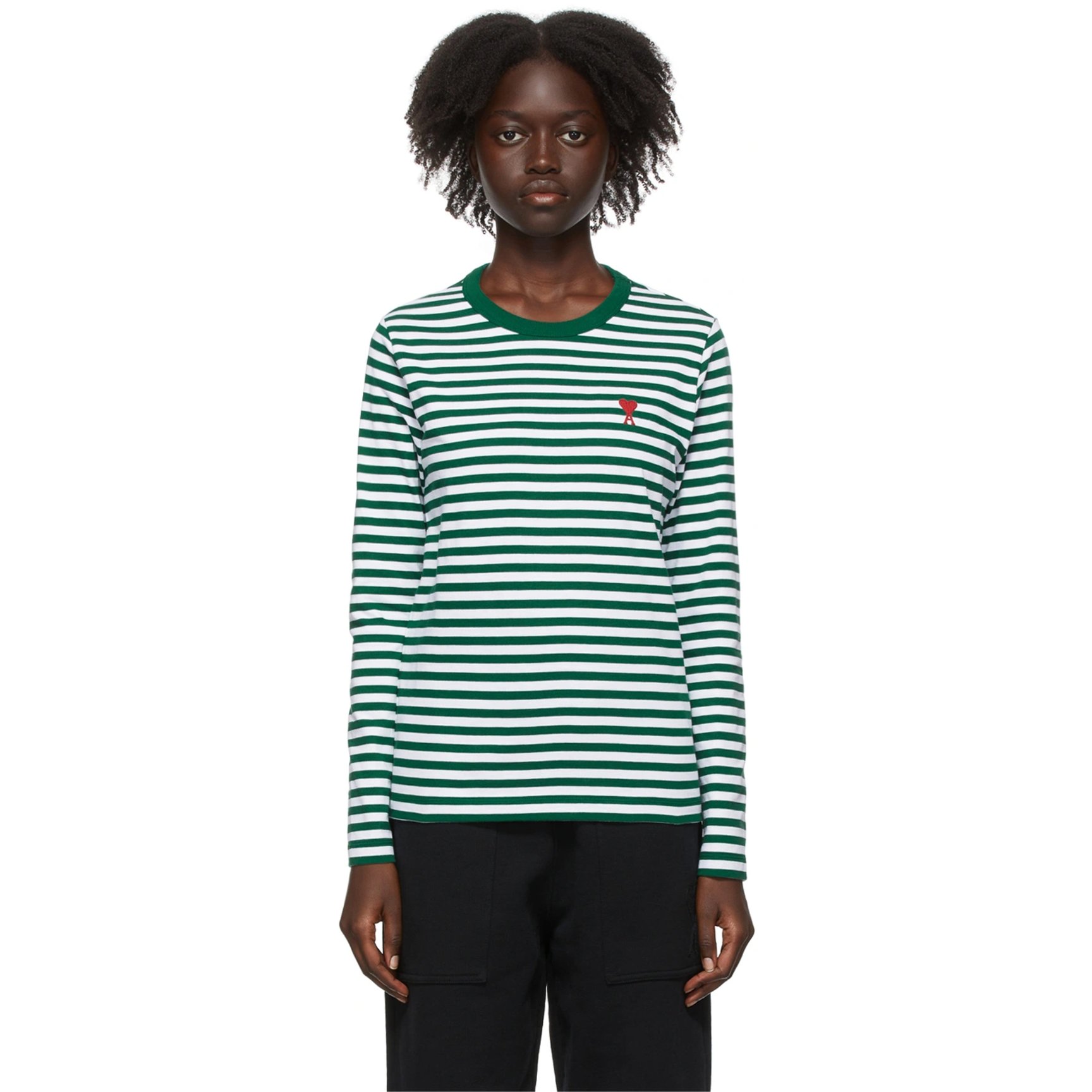 AMI ALEXANDRE MATTIUSSI グリーン & ホワイト Ami de Cœur Marinière ロング スリーブ T シャツ ¥15900(31%OFF)(関税・消費税込)