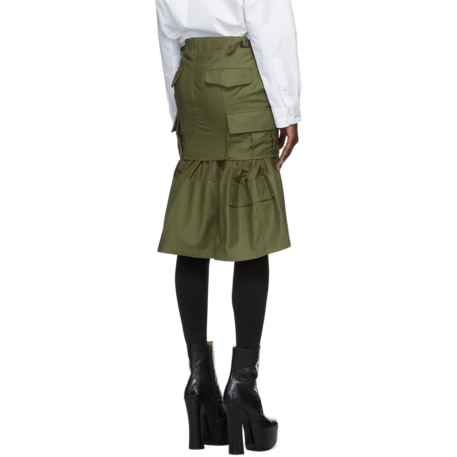 「ジュンヤ ワタナベ(JUNYA WATANABE)」のグリーンスカートは、独特なデザインが特徴。カーキカラーなのでどんなトップスにも合わせやすく、コットンツインとテクニカルサテンのパネル仕立てで素材感もバッチリです。ブランドらしい個性的なデザインが一押しポイント。