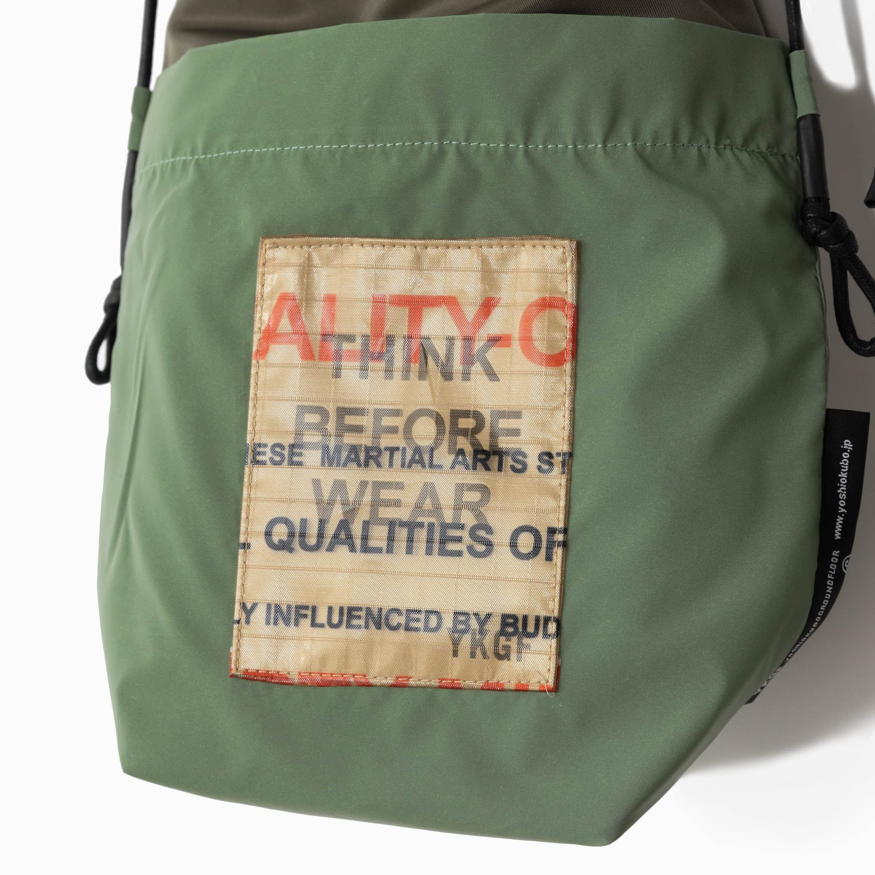 "ちょとそこまで"のお出かけにピッタリな巾着バッグ。ミリタリーライクなカーキのバッグは、どんな服装にも合うデザインなので、デイリー使いにピッタリです。財布やスマホなど必要最低限のものなら入る収納力の良さや、未使用時は折り畳める仕様など、使い勝手の良さもバッチリ。