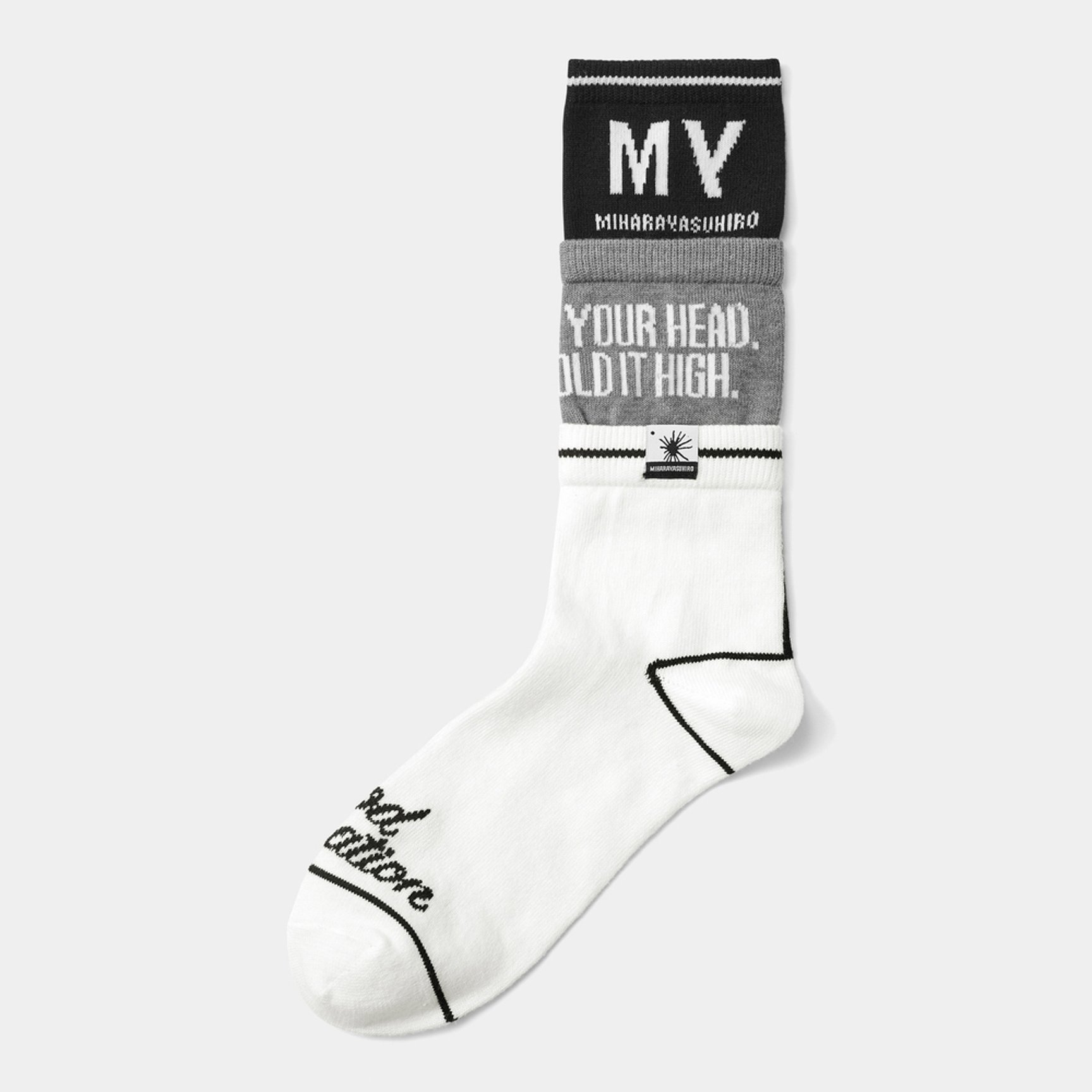 グッズからは、ミハラヤスヒロを代表するオリジナルソールのスニーカー(3990円)をはじめ、トートバッグ(1990円)やソックス(490円)などが登場。