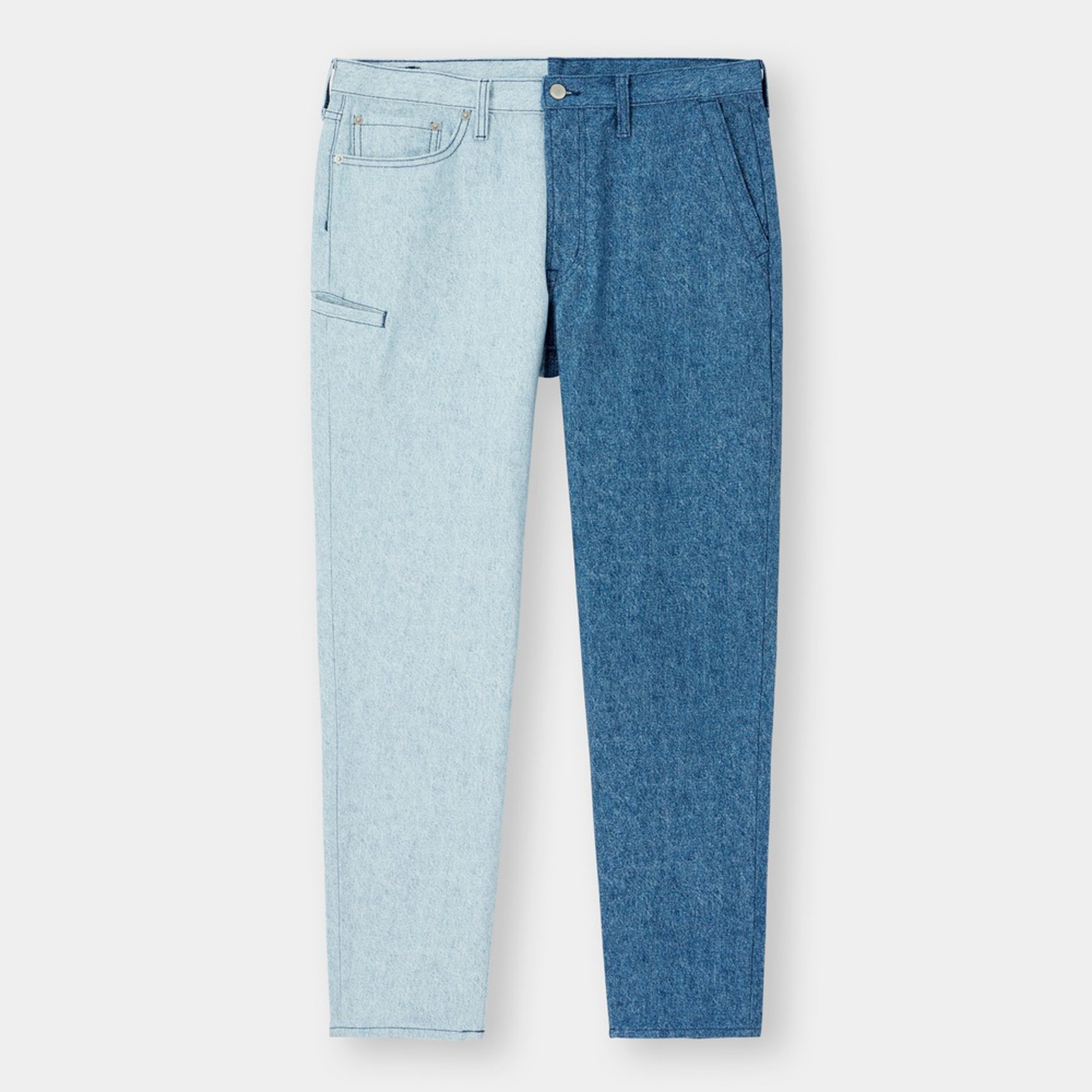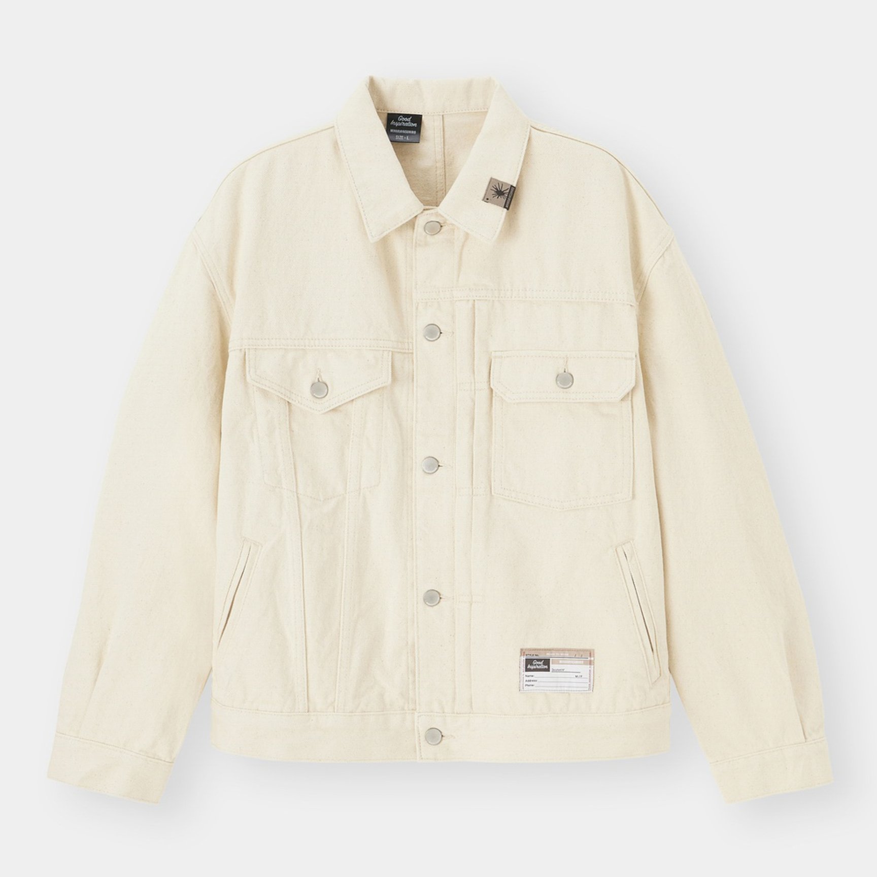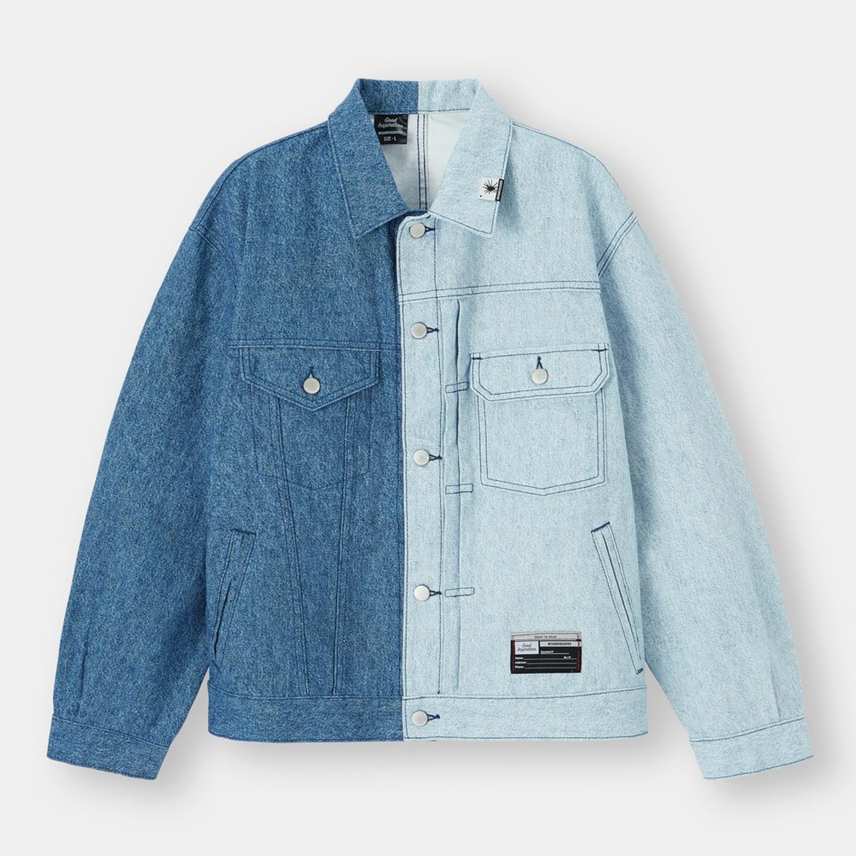 アウターはジーユーの人気商品シェフジャケット(3990円)や、左右で濃度が異なるデニムを切り替えたジャケット(4990円)などを販売。全てのアイテムにブランドロゴをデザインしたタブを施し、ウェアにはネームタグがあしらわれています。