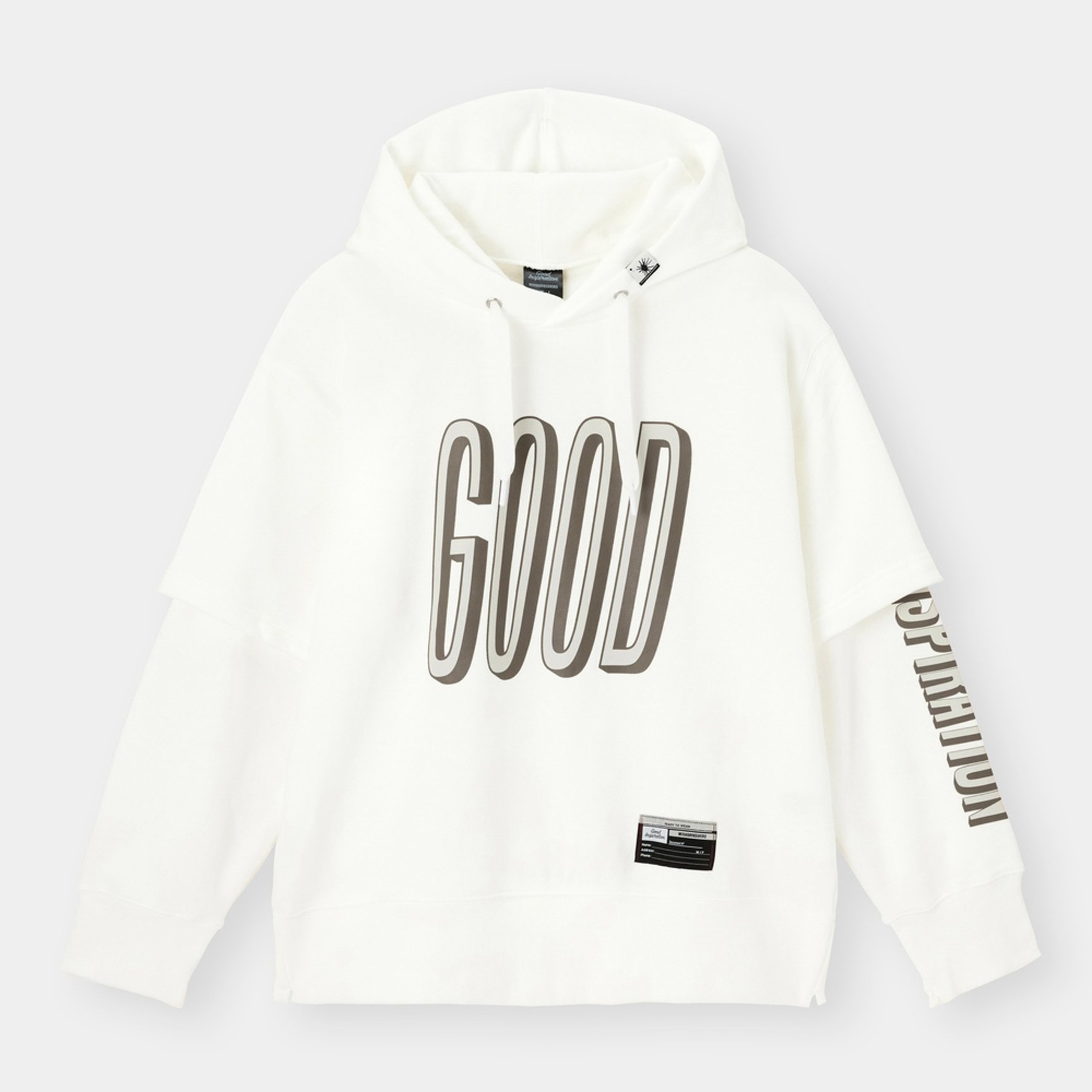 フルラインストア限定アイテムとして、前面に「GOOD」の文字をプリントしたビッグシルエットのフーディー(2990円)や、ストライプのノーカラージャケット(4990円)などを用意。