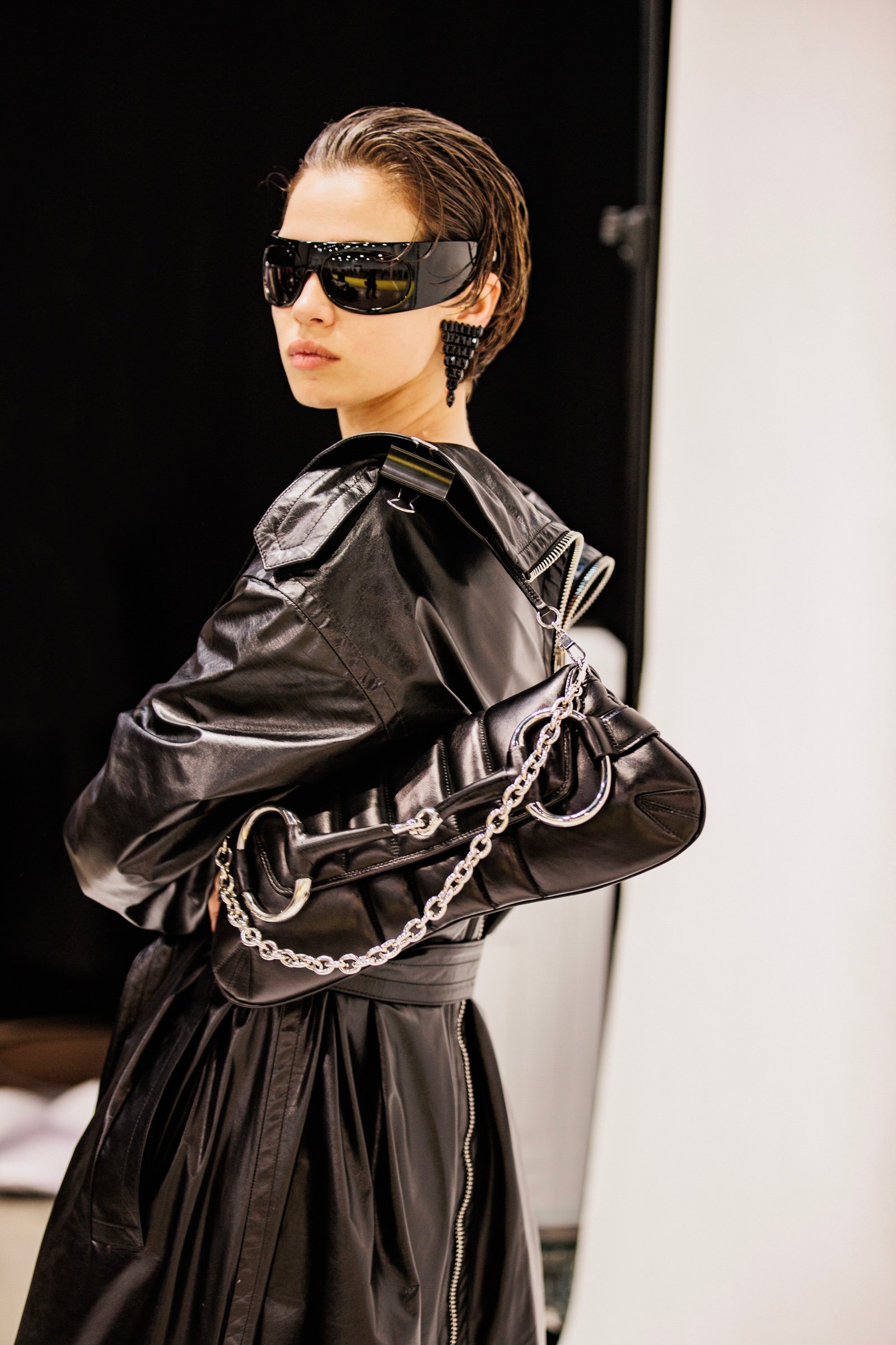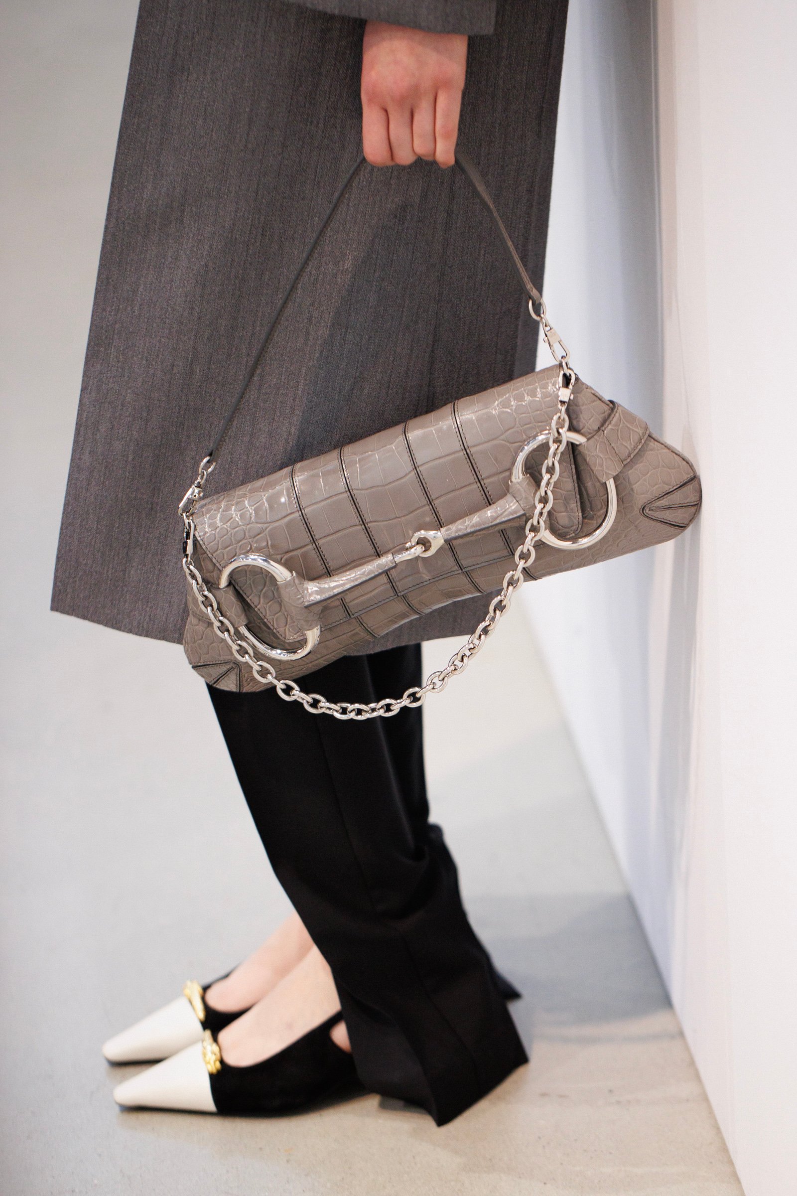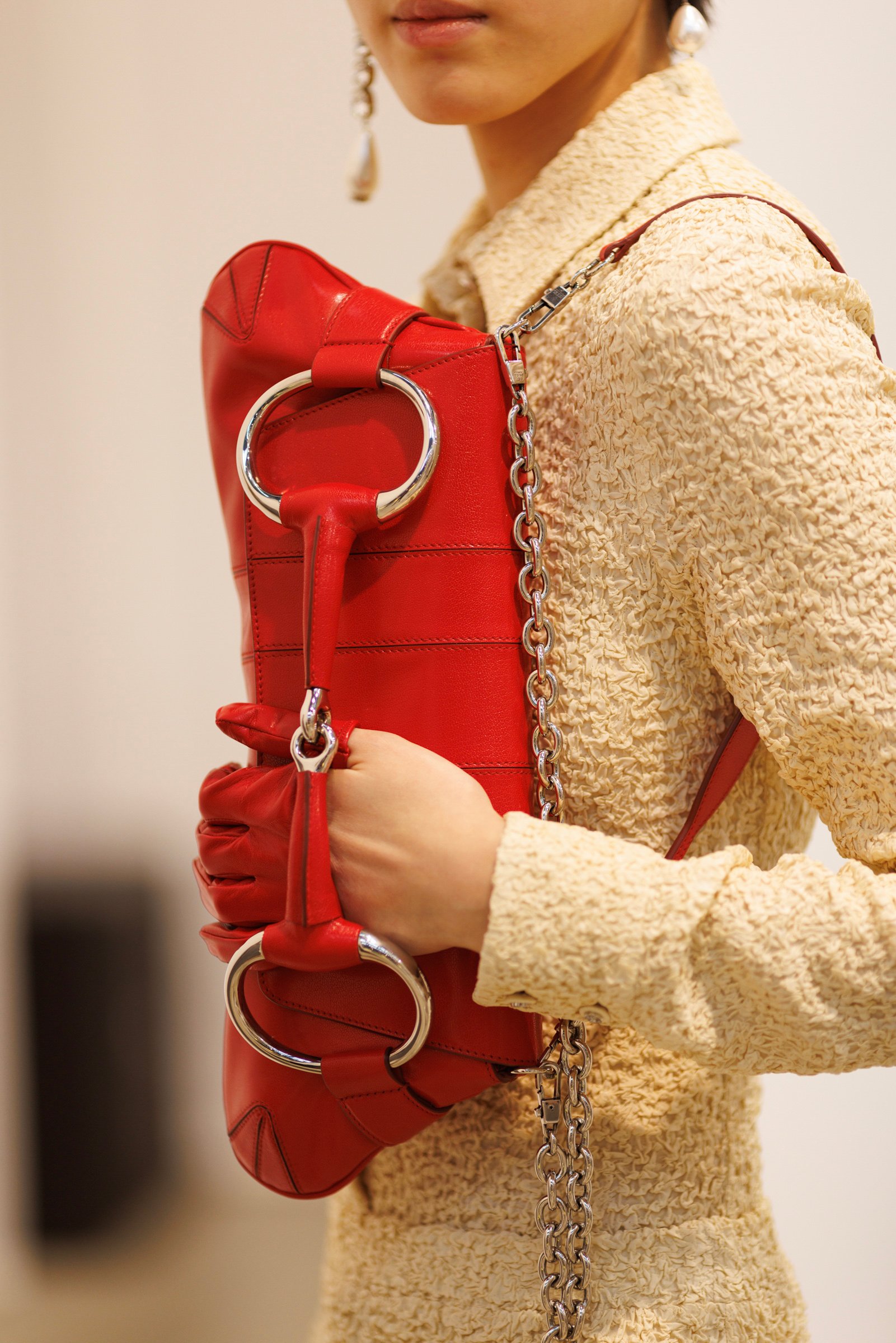 グッチのアイコンモチーフであるホースビットを拡大しデザインしたラウンドがかった台形シェイプのバッグが多数登場。パテッドやシアリング、クリスタル、レザーといった様々な素材と色のバリエーションで披露された。また実用性のありそうな、柔らかな素材のビッグサイズ「ジャッキー」も登場した。