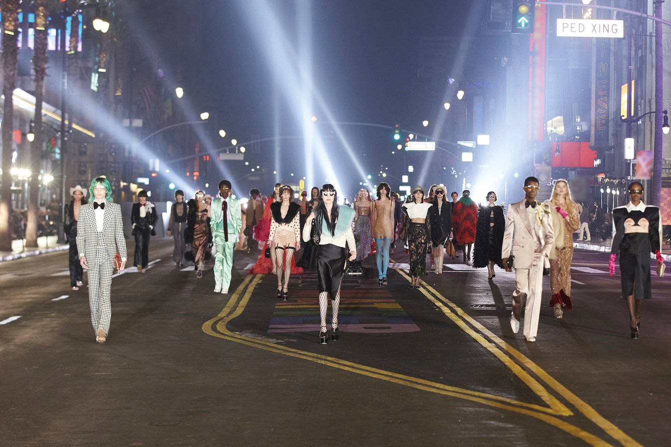 アレッサンドロ・ミケーレが「グッチ(GUCCI)」創設100周年を記念するファッションショーの地として選んだのはアメリカ・ロサンゼルス。現地時間で11月2日夜、ハリウッド・ブルーバード(大通り)をランウェイに見立てて、全115ルックの壮大な「LOVE PARADE」が繰り広げられた。
