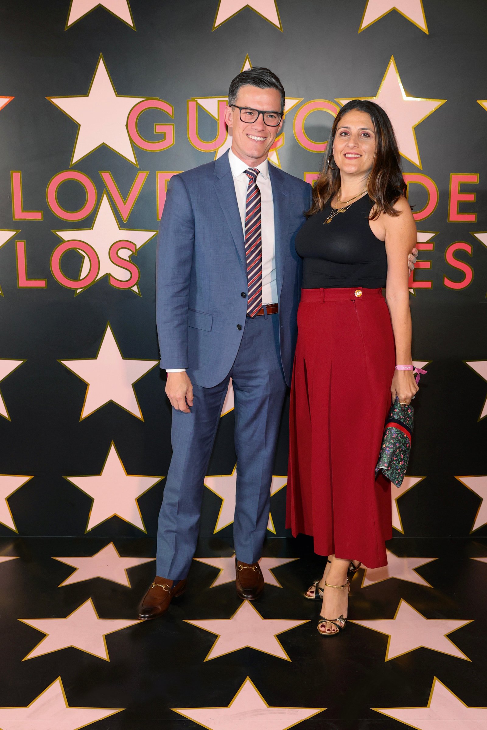 ショーの当日、通常なら多くの観光客で賑わうハリウッド・ブルーバードが閉鎖され、一夜限りで壮大なショー会場へと変貌。エルキャピタン劇場のネオンには「GUCCI LOVE PARADE」の文字が踊り、ハリウッド・ウォーク・オブ・フェイムで知られる歩道にはグッチ仕様のディレクターズチェアがずらりと並んだ。