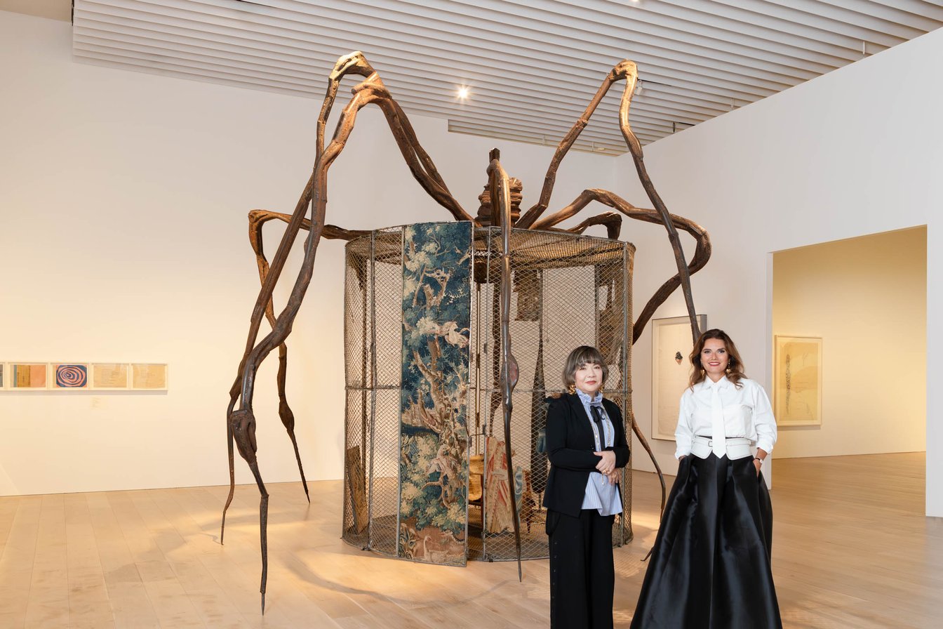 左から片岡真実(森美術館 館長)、 アン・キャロライン パラザン(ゲラン ヘッド オブ アート・カルチャー・アンド・ヘリテージ)、ルイーズ・ブルジョワ《蜘蛛》 (1997)と共に。撮影: 菅野恒平 ©The Easton Foundation/Licensed by JASPAR, Tokyo, and VAGA at Artists Rights Society (ARS), New York