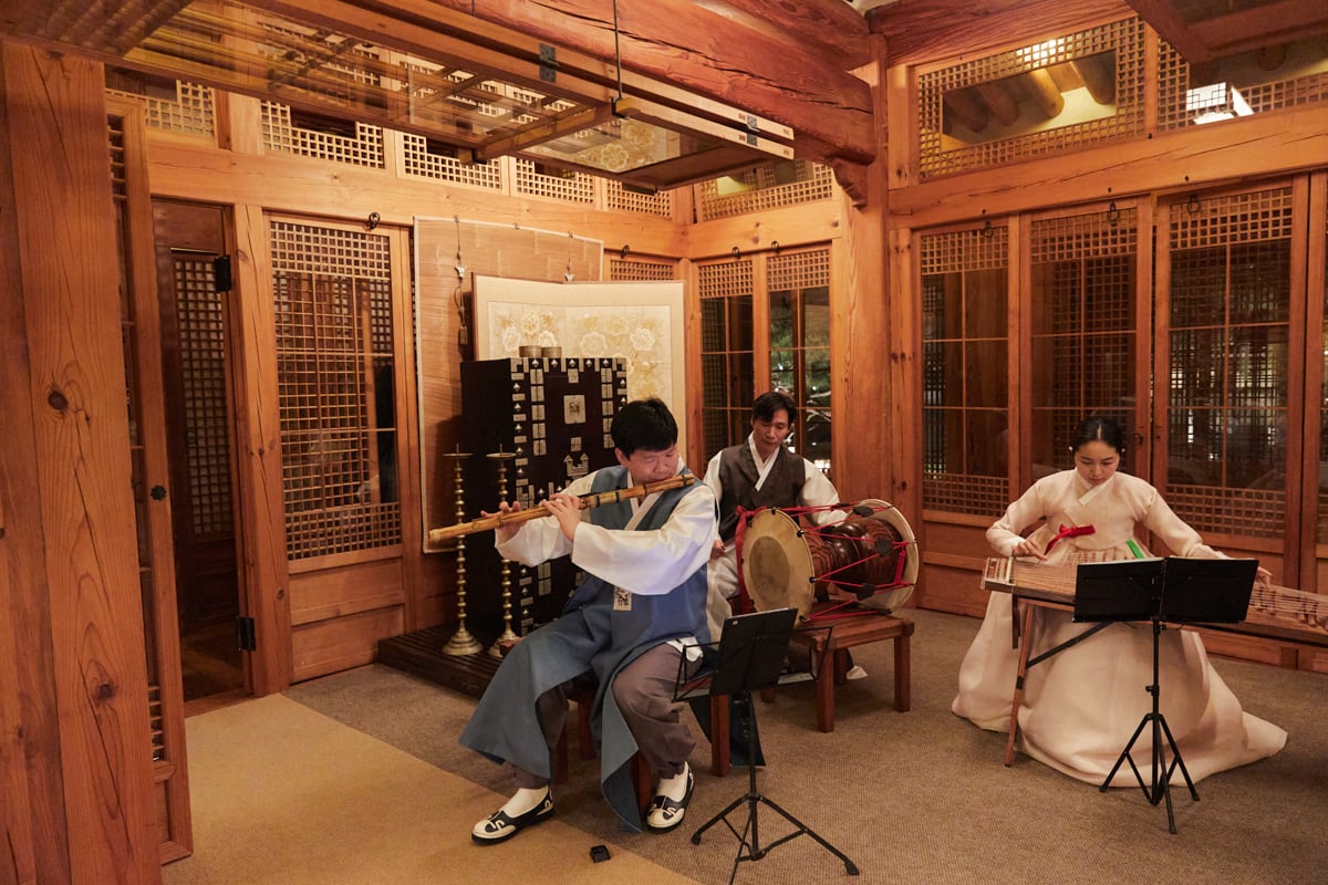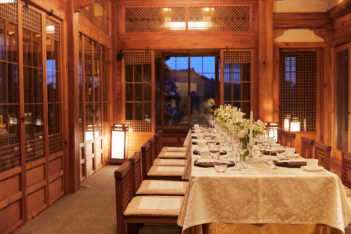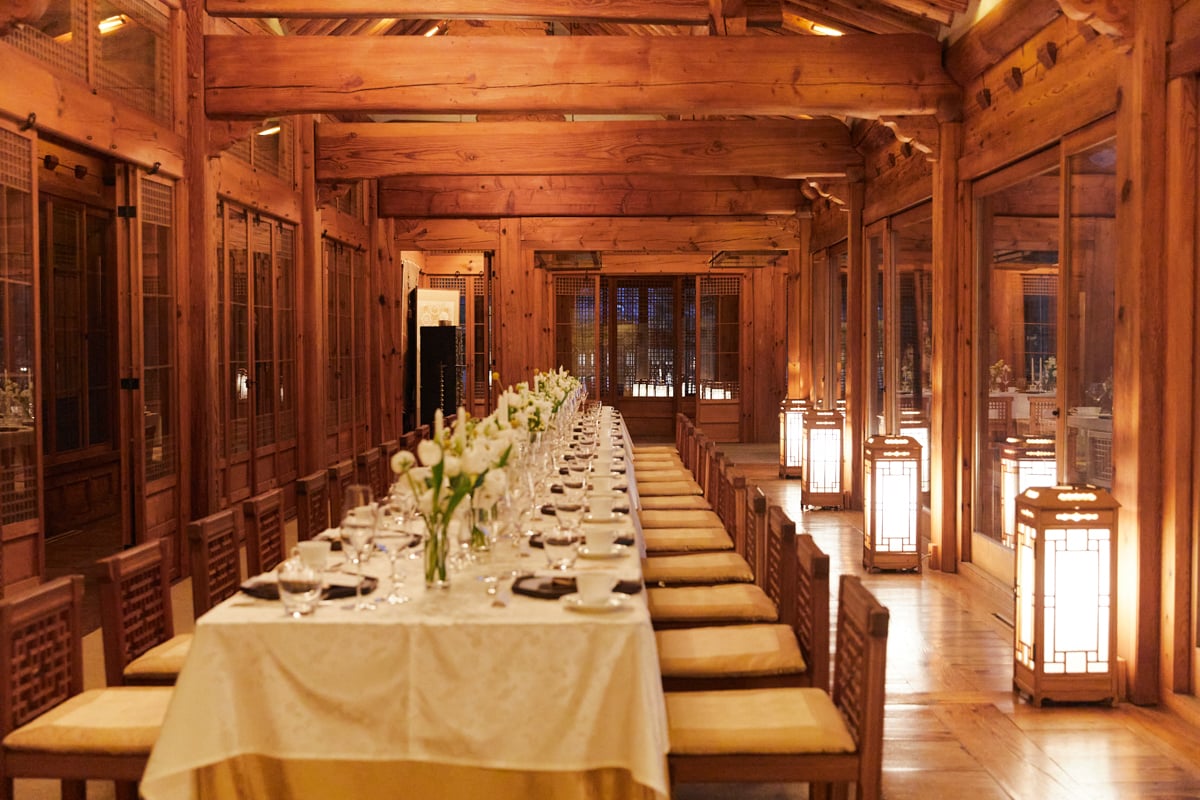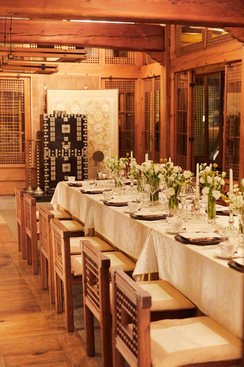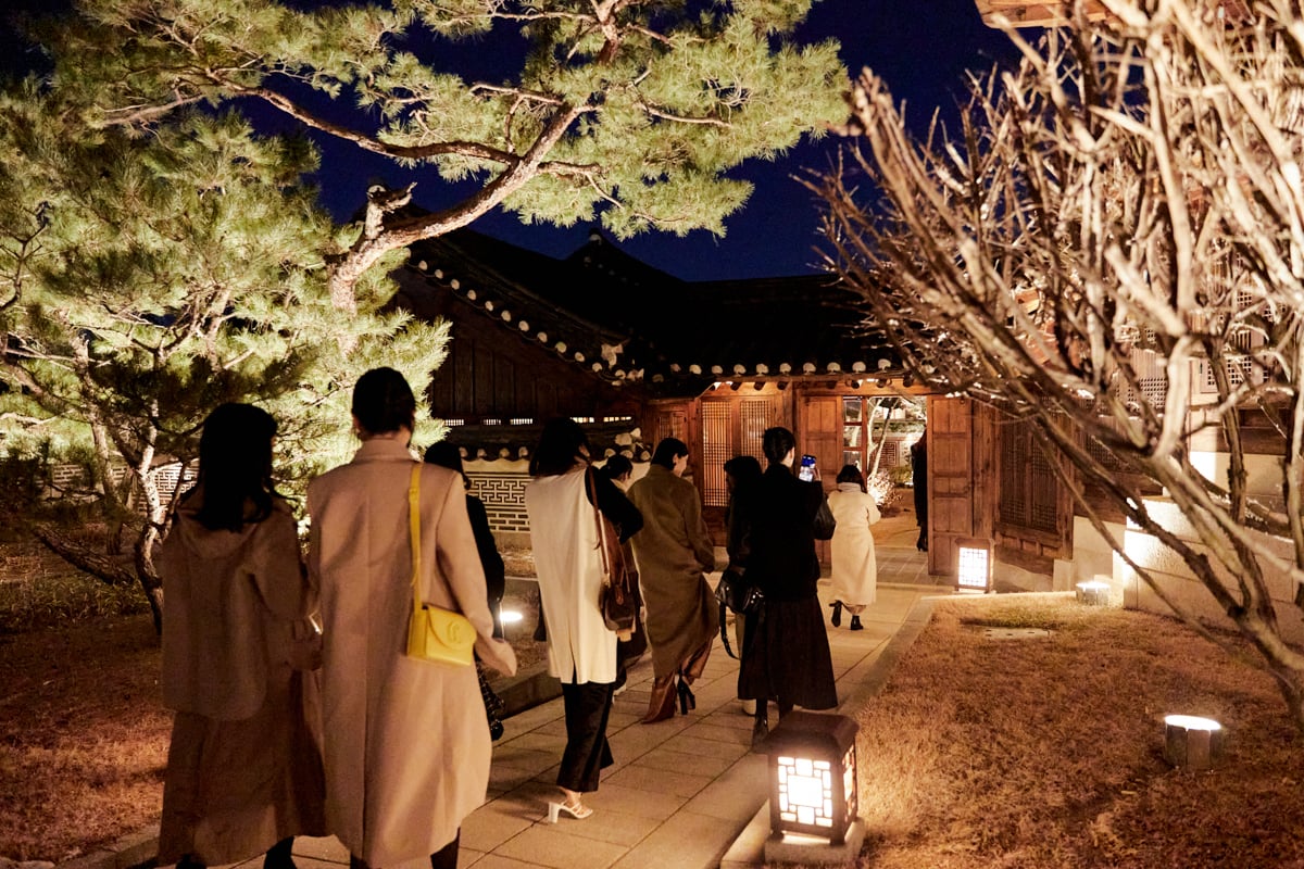 イベント会場のさまざまなコンテンツの細部まで美しかった今回のトリップ。その心意気は食事にも反映されていました。ディナー会場は、ソウル・城北(ソンブク)のKorea Furniture Museum(韓国家具博物館)。朝鮮後期に制作された伝統的な木製家具がずらりと並び、韓国の伝統的な住居空間や生活様式、木造でありながら繊細で美しい装飾を手掛けた職人技に触れることができるました。2010年にはソウル・G20サミットの会場になり、各国の要人をもてなすために使われることもしばしば。グローバルグループBTSのインタビュー会場にも選ばれるなど、韓国を代表する伝統が息づくランドマークとなっているそう。柔らかなムードと重厚感が共存するち密な造りの建物と、職人たちによる手仕事が紡いだ美しい家具に包まれながら食事が進みました。