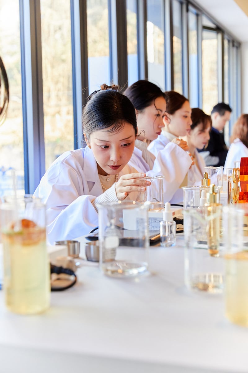 オイル美容液に込められた力を学んだら、実際に手を動かして、プロフェッショナルの力を体感してみます。「フォーミュラ・ラボラトリー・ワークショップ」では、ベースとなるリキッドと美容成分を含んだマイクロビーズを調合し、自分だけのブースト美容液づくりに挑戦。