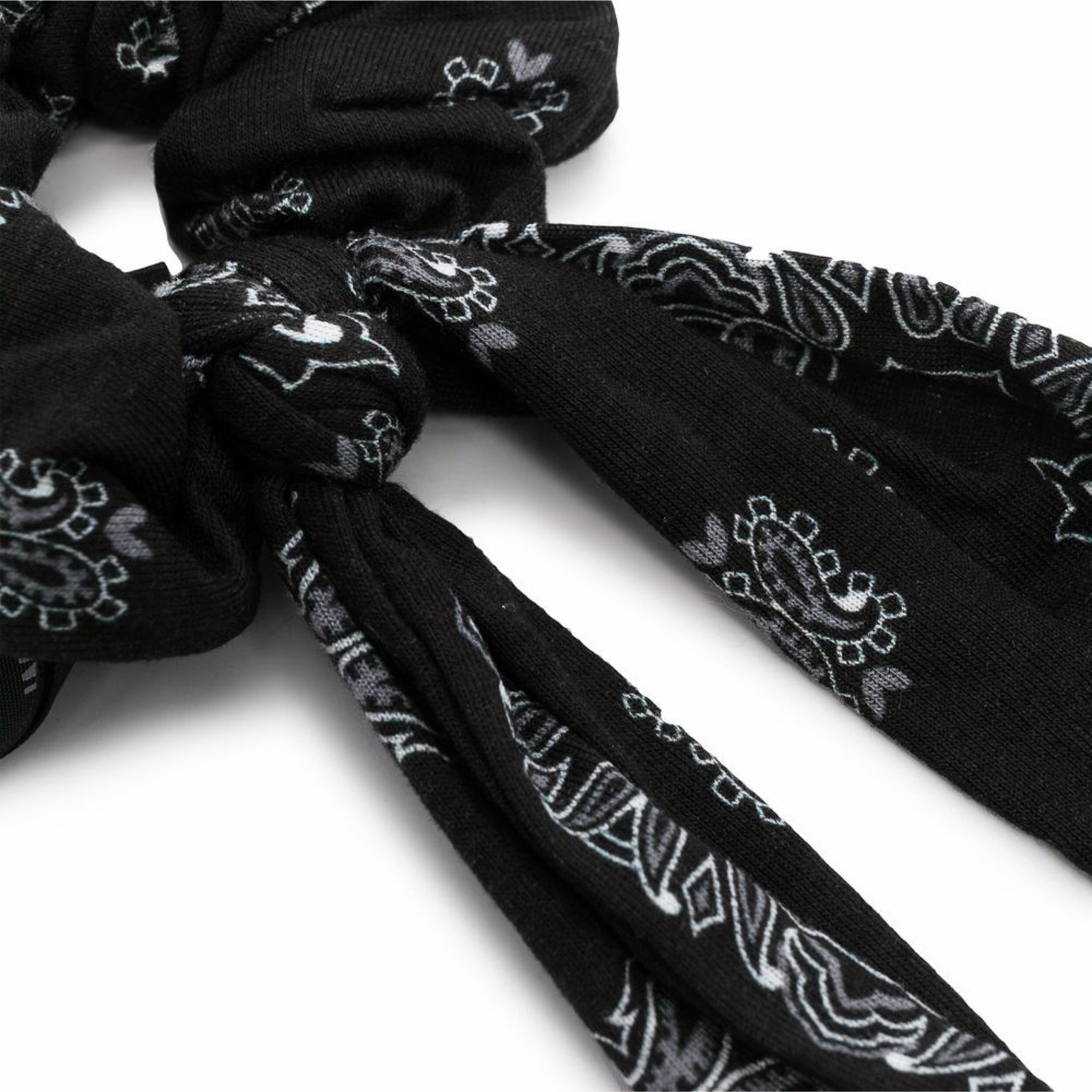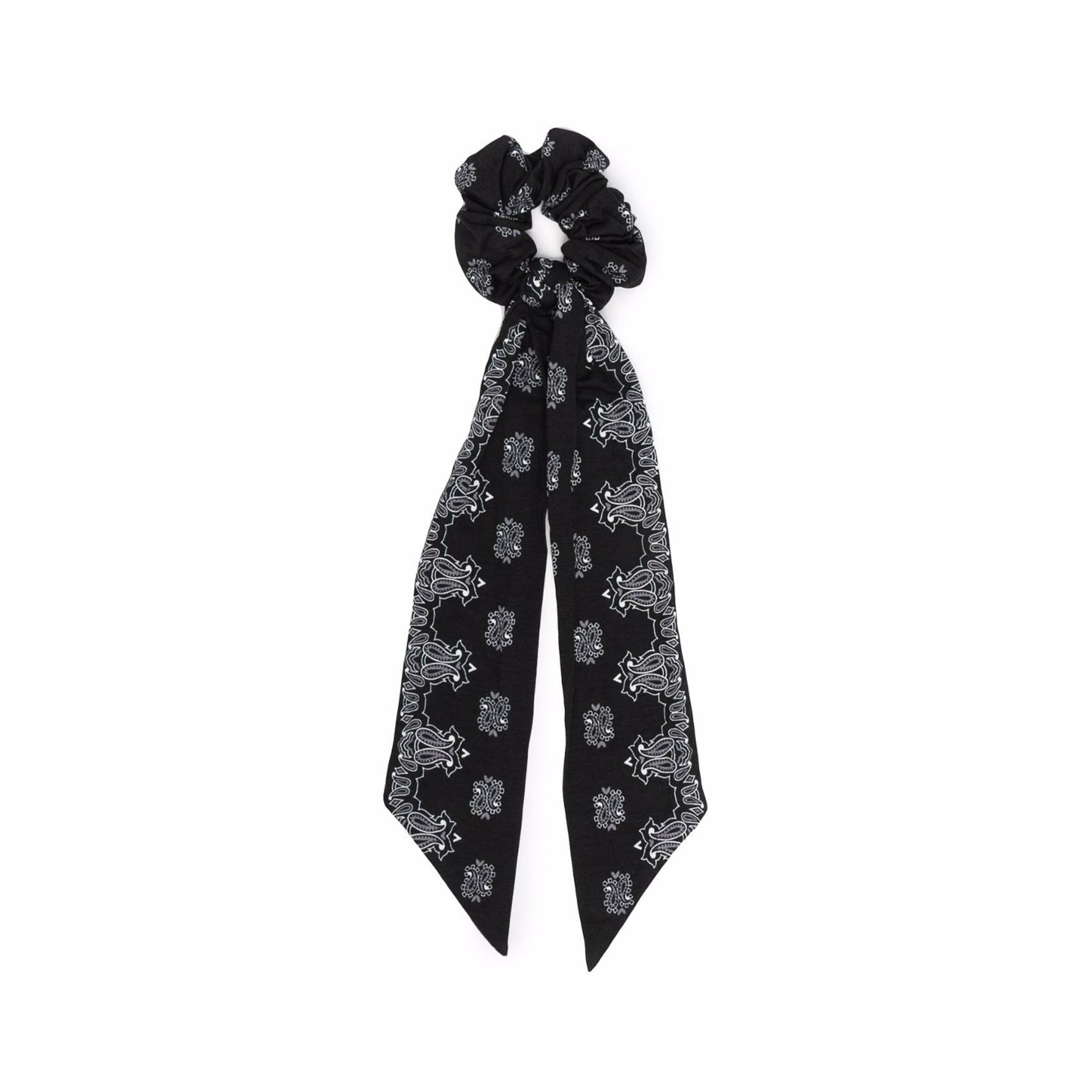 「サンローラン(SAINT LAURENT)」のシュシュは、ペーズリーをプリントし、バンダナのようにカジュアル感覚で楽しめるデザインがポイント。ブラックベースなのでシックな装いとも相性抜群です。