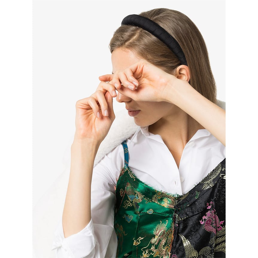 人気海外ドラマ「ゴシップガール」で着用されたヘアアクセサリーブランド「ジェニファーベア(Jennifer Behr)」からシンプルなアイテムをピックアップ。ブラックのシルクリボンを巻きつけた、ぷっくりと厚みのある1本です。