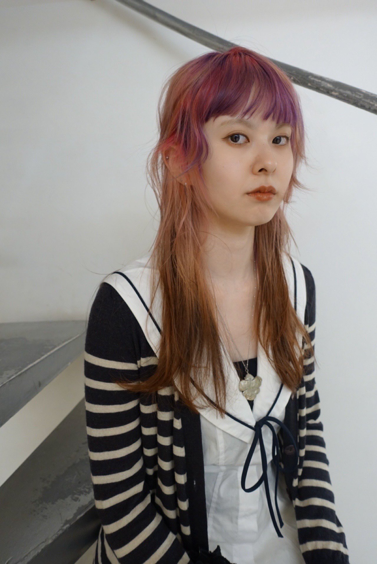 1990年代のビョーク(Björk)をイメージしたロングのレイヤースタイル。前髪のギザギザしたカットと、ブリーチした自然なゴールドブラウンのカラーがポイント。自眉を活かしたナチュラルメイクがおすすめです。彼女の世界観が好きで、モードの中にファニーな要素も欲しい方はぜひ。(@kimura_achikoh)