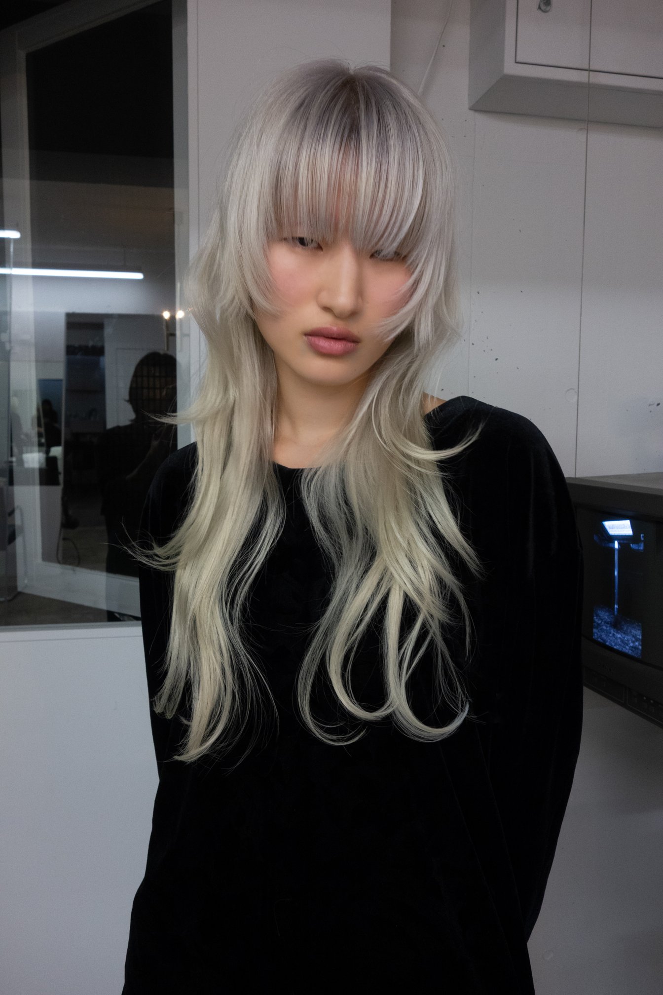 大胆にホワイトブリーチを施したハイレイヤーのロングスタイル。色落ちも綺麗で、紫シャンプーで色を保てるのも嬉しいポイントです。髪色に合わせて彩度が低めのメイクアップがおすすめ。アクセントになる色をリップだけ取り入れてみるのも◎。相性のいいファッションはモード一択です!(___kazuho__)