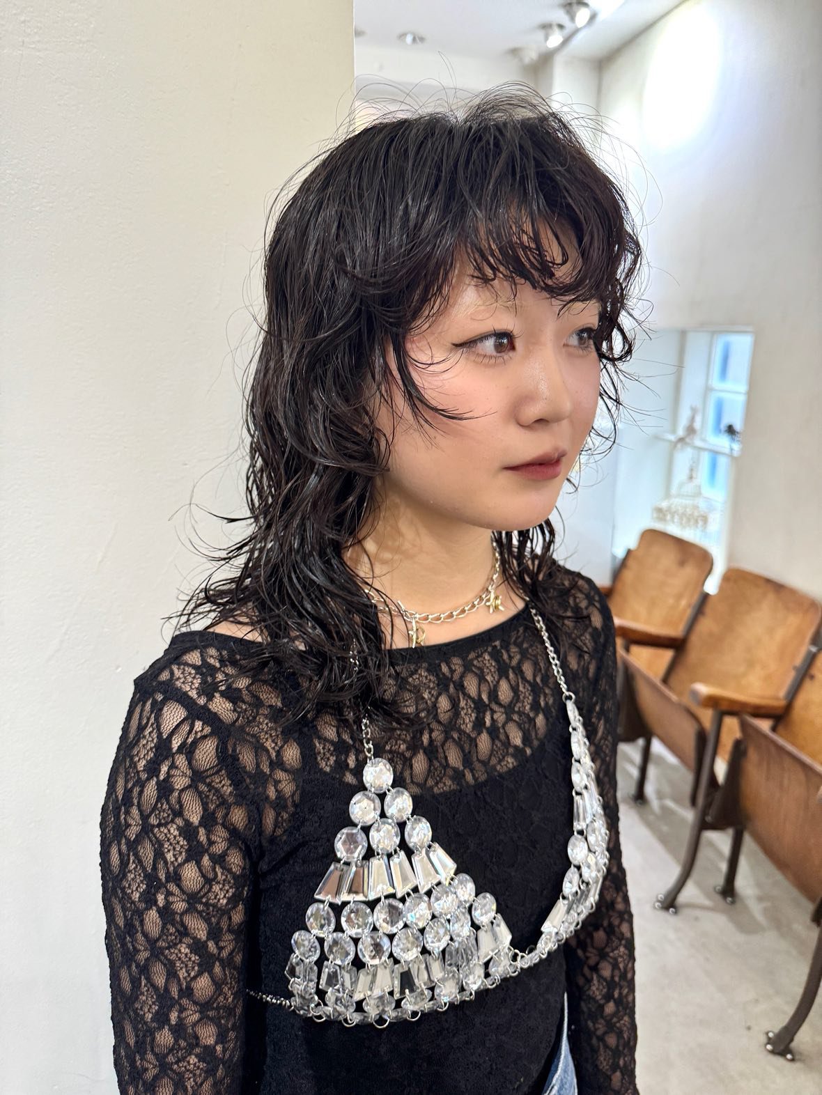 ただのロングやハグレイヤーとは差をつけたい人におすすめのスタイル。前上がりのマレットヘアとパーマを組み合わせました。洒落見えするデザインなので、モード好きの方におすすめです。もちろんナチュラルメイクも良いですが、ツヤっぽくしっかりベースを作り込むとエレガントな雰囲気が出て良いかと。(@ryusei_wada)