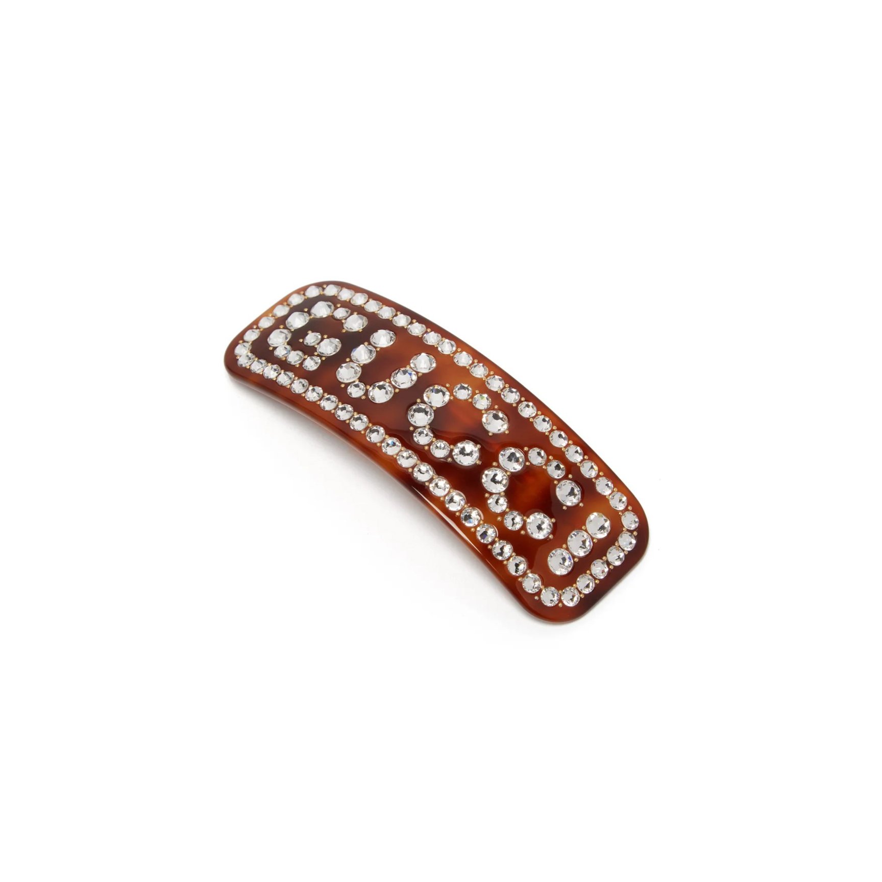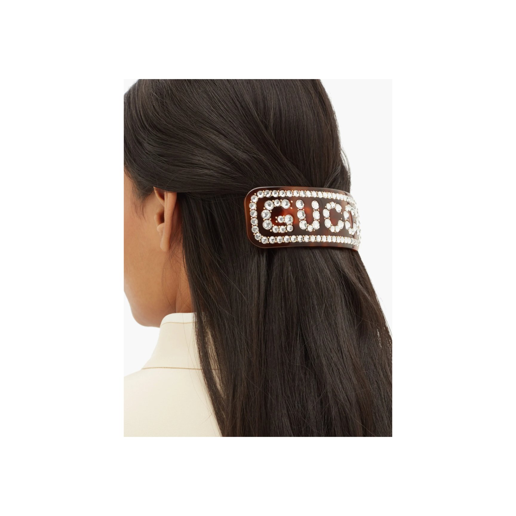グッチ(GUCCI)のロゴが配されたボリュームのあるヘアクリップです。シックなべっ甲柄に、クリスタルのブランドロゴが映えます。どんなファッションにも合わせやすいので、幅広く活躍してくれるはず。