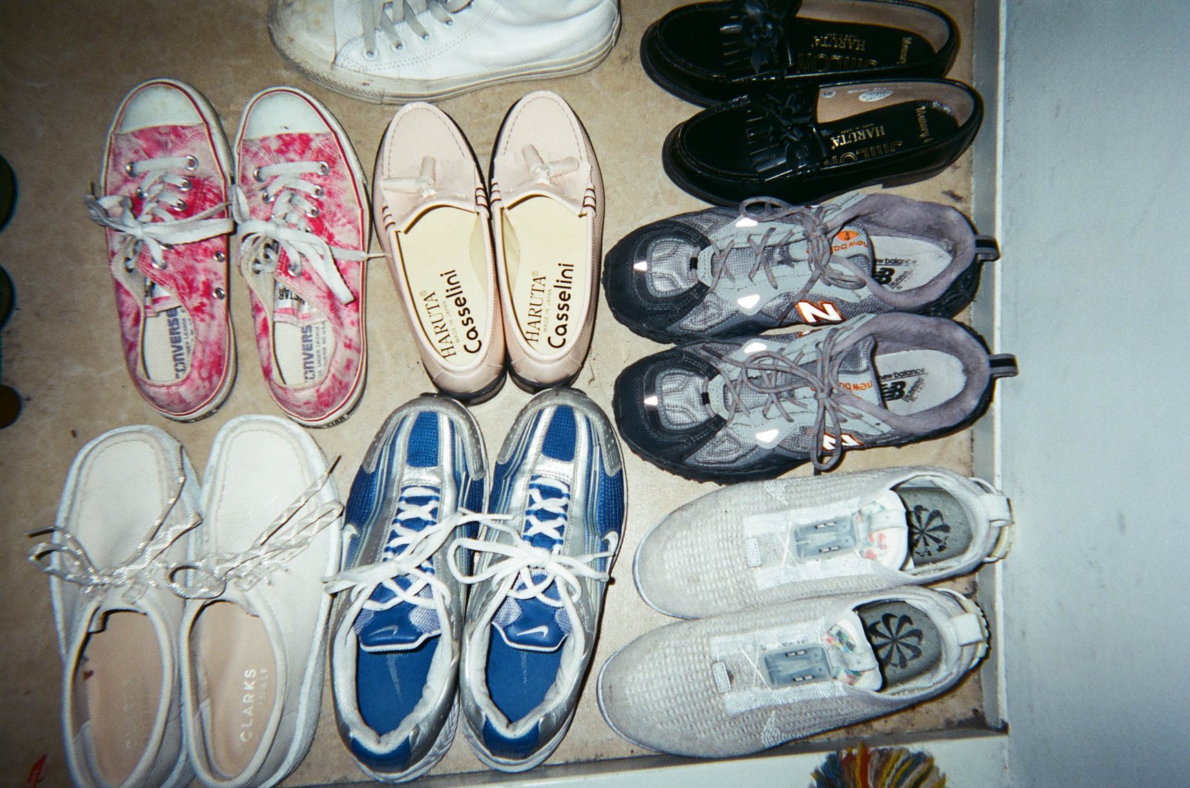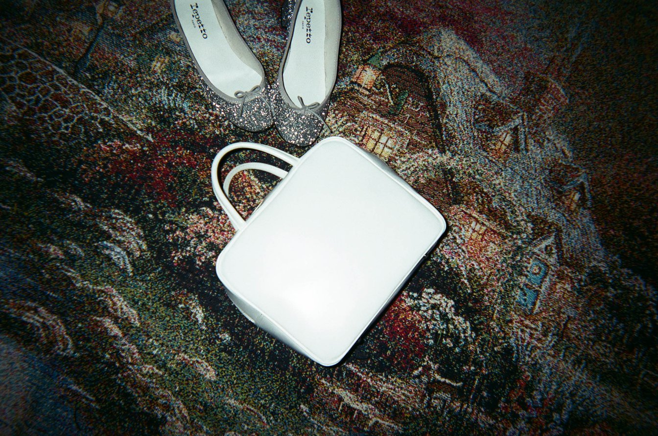 「これから大変なことがたくさんあって白いバッグにも傷がつくと思うけれど、それも思い出だから」とデビュー時にオーナーの英香さんからプレゼントしてもらったというコムデギャルソンのバッグ。靴は最近購入したレペットと、シーロン×ハルタがコラボしたローファー