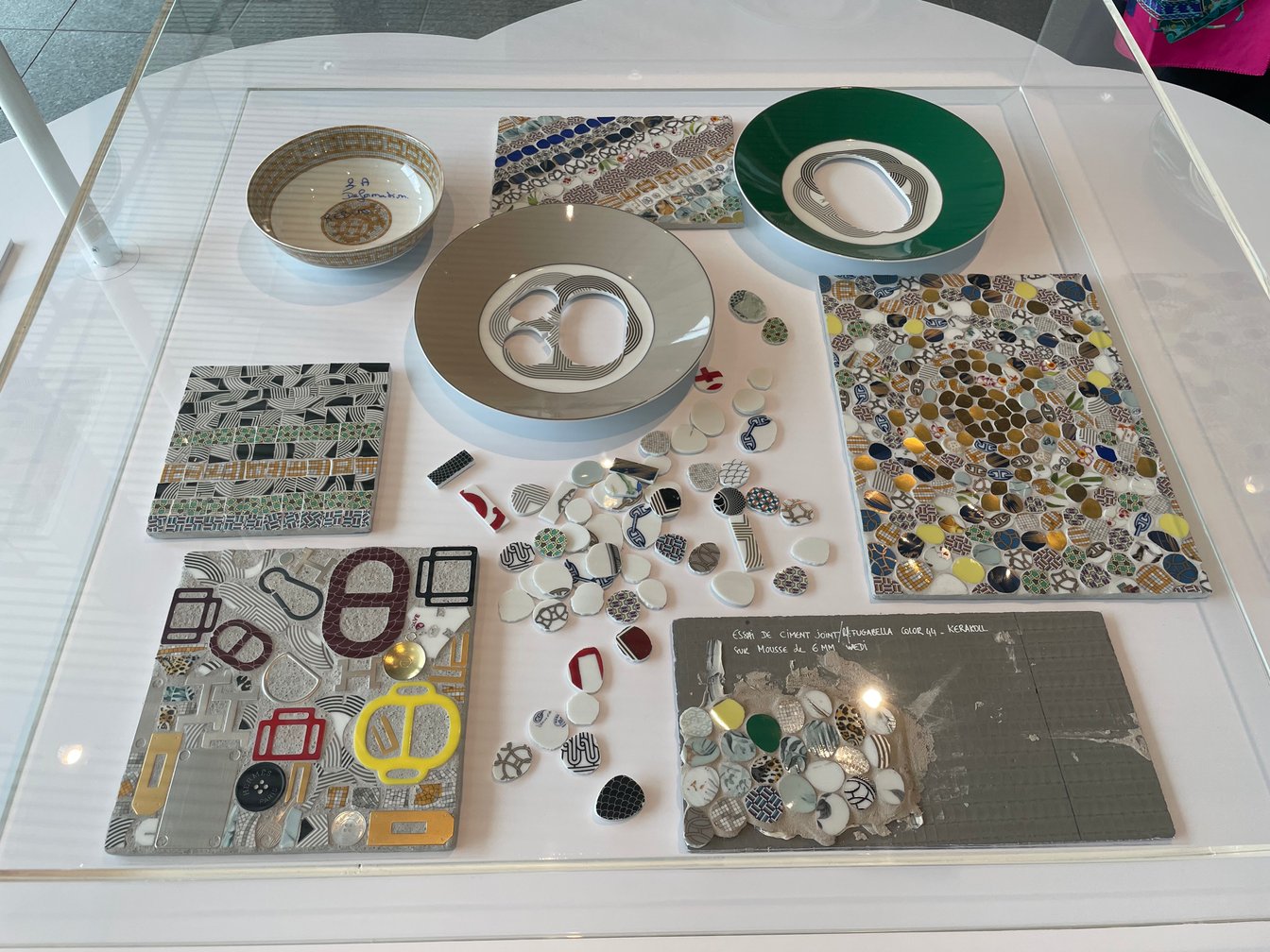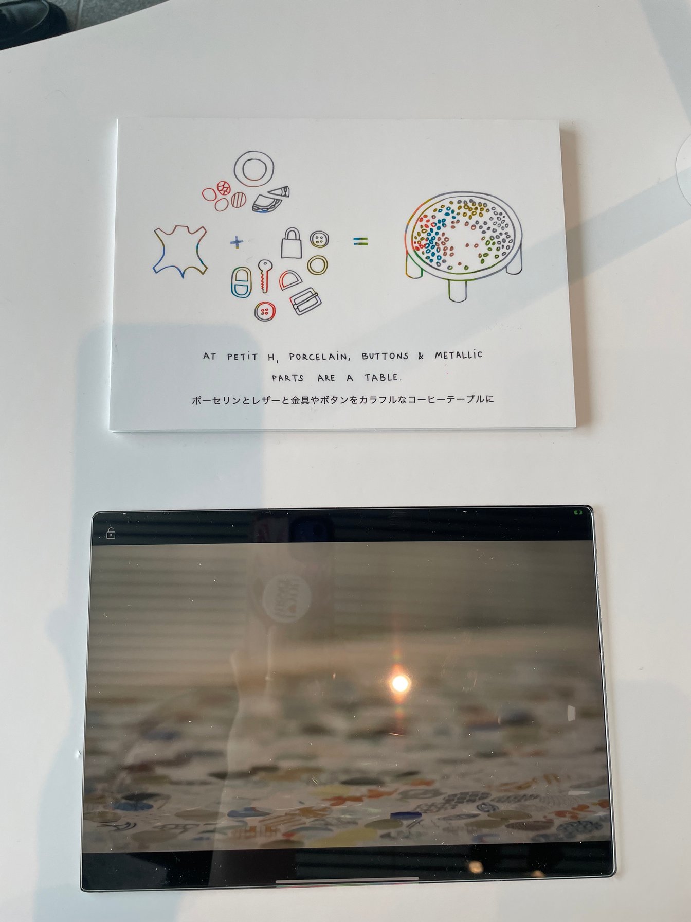 ポーセリン(磁器)や金具、ボタンなどはモザイク画のように並べてコーヒーテーブルに、馬具である鞍骨(くらぼね)はギターへと生まれ変わり、その製造工程が展示や動画で紹介されている。