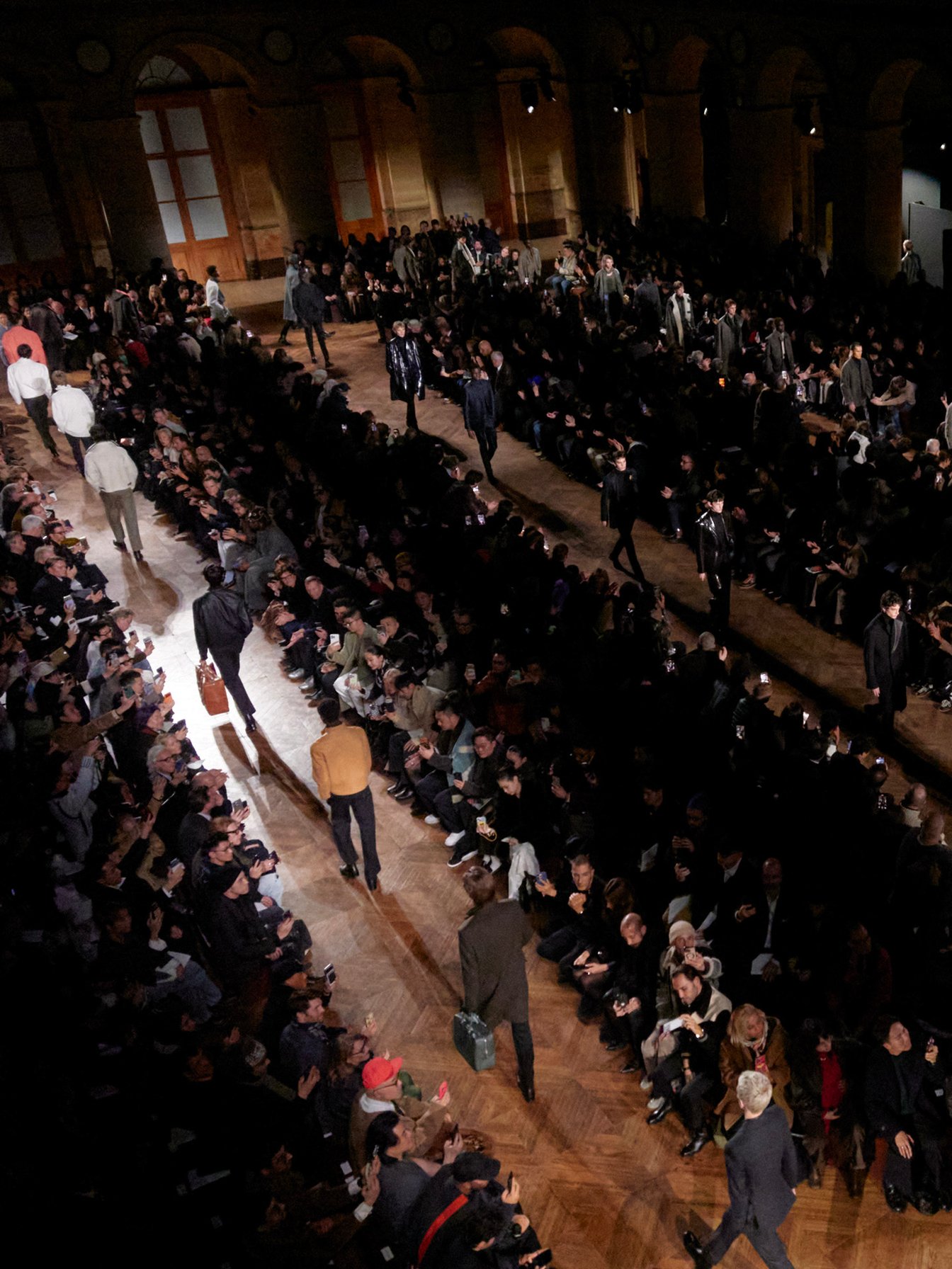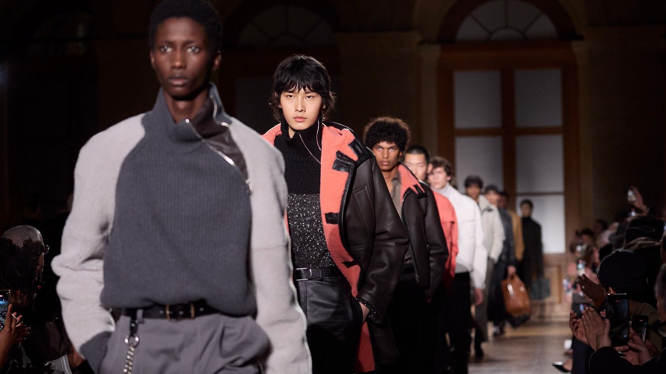 パリで迎えたラストコレクションのフィナーレ。高い天井から降りてきた数々のスクリーンに、ヴェロニク・ニシャニアン(Véronique Nichanian)が37年間にわたって「エルメス(HERMÈS)」メンズ部門を率いてきた軌跡が映し出された。総立ちの拍手と歓声に包まれながら歩いたその時を、ヴェロニクは「私の人生において感動的な瞬間でした」と振り返る。