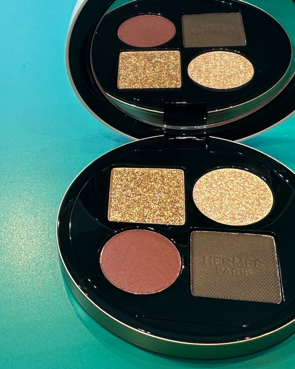 4色入りのアイシャドウパレット「オンブル ドゥ エルメス パレット クワテュール」に収められたマット、サテン、シマーの質感は、シルクのコレクションにインスパイアされたもの。マットはシルクのシフォンを、サテンはシルクツイルを、シマーはシルクのラメを彷彿とさせる。カラーパレットは、メゾンを象徴するような色彩に、ピルピリス氏の故郷ギリシャの自然や景色のエッセンスを融合。鮮やかな海のようなブルー、夕暮れのようなオレンジといった具合に。ソフトタッチな微細なパウダーは軽やかで、グラデーションやブレンディングは自由自在。思い描いた仕上がりに導き、濃淡の調整で印象深いまなざしを彩ることができる。