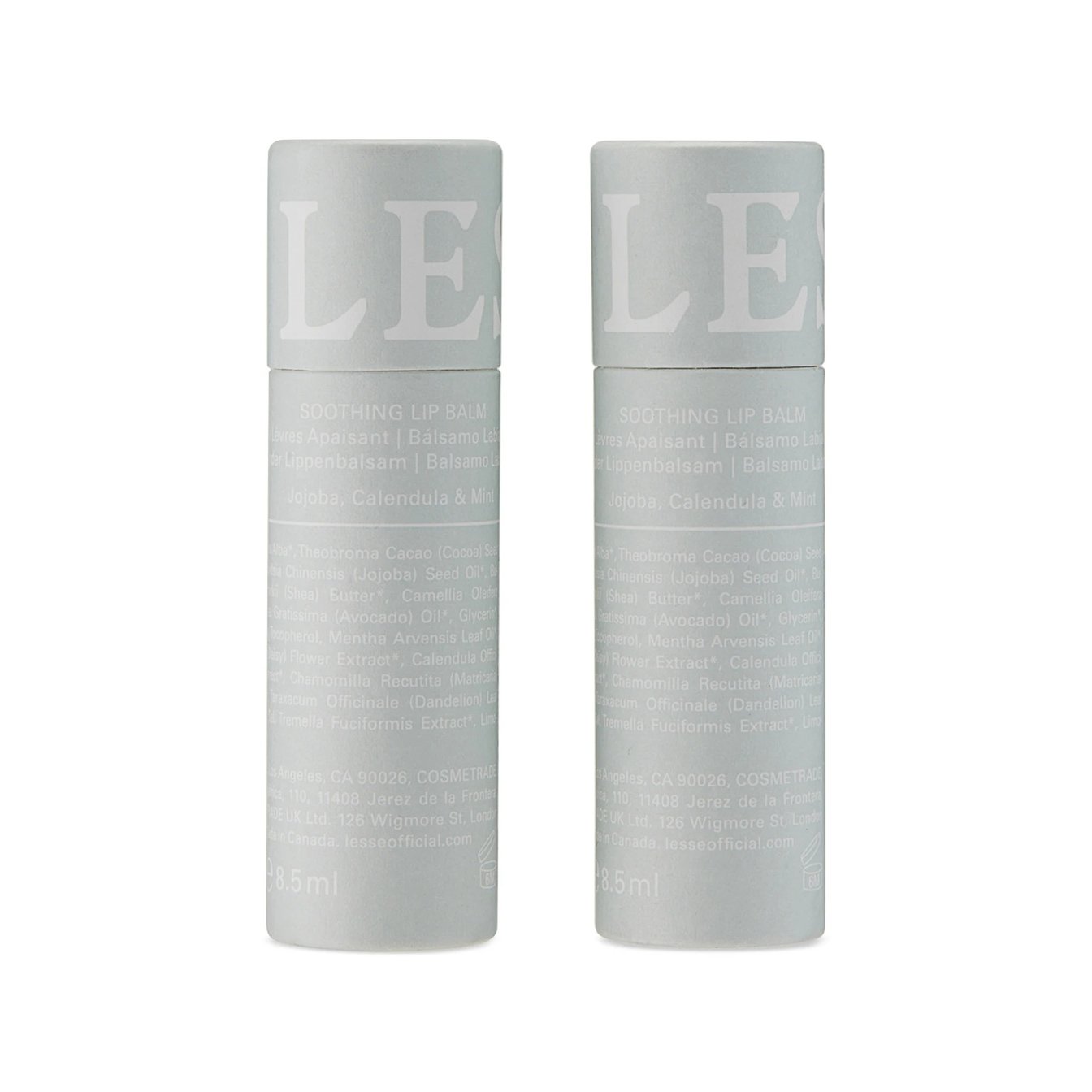 再生紙のおしゃれなパッケージと、たっぷりと使える2本セットが嬉しい「レセ(LESSE)」のスージングリップバーム。回復力やカバー力が高いカレンデュラやミント、ビタミンを多く含んだ自然由来の成分を採用した、唇の乾燥やひび割れをケアするのに最適なアイテムです。