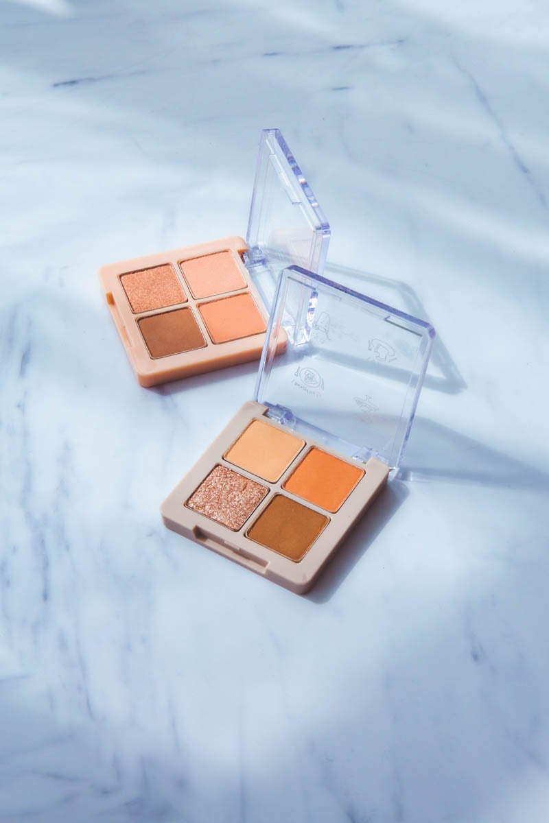 どちらも私が好きな食べ物です(笑)。ファンの方にもお馴染みなので、そういうところでも愛着をもっていただけるんじゃないかなって。ピンクとオレンジブラウンはいつも使っている色なので、その最強パレットができたらいいなと思っていて。本当は1つだけの予定だったのに、どうしてもとお願いして2パターン作っていただいたんです。色味は普段使いしやすくて、色々なバリエーションもできるようなものを重視しました。2種類とも使いやすさも考えて、左上から時計回りに順番に重ねていくと綺麗なグラデーションになるので、おすすめです。