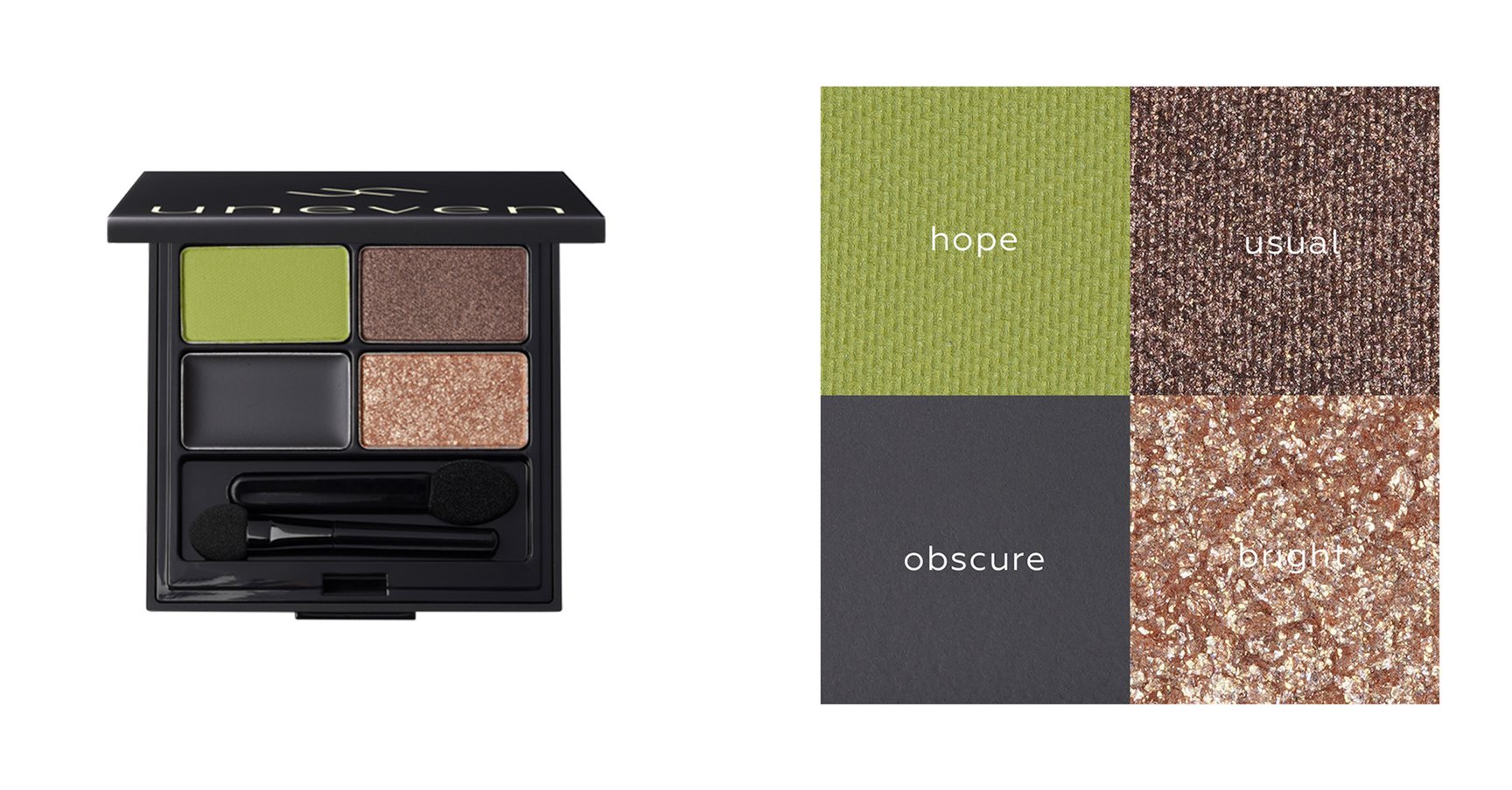 ブランド初のクリスマスコフレは、グリーンの限定ボックスにアイパレット、マスカラ、初登場のリップバームをセット。これまでのマットなイメージとは裏腹に、全てのアイテムにラメが入っています。