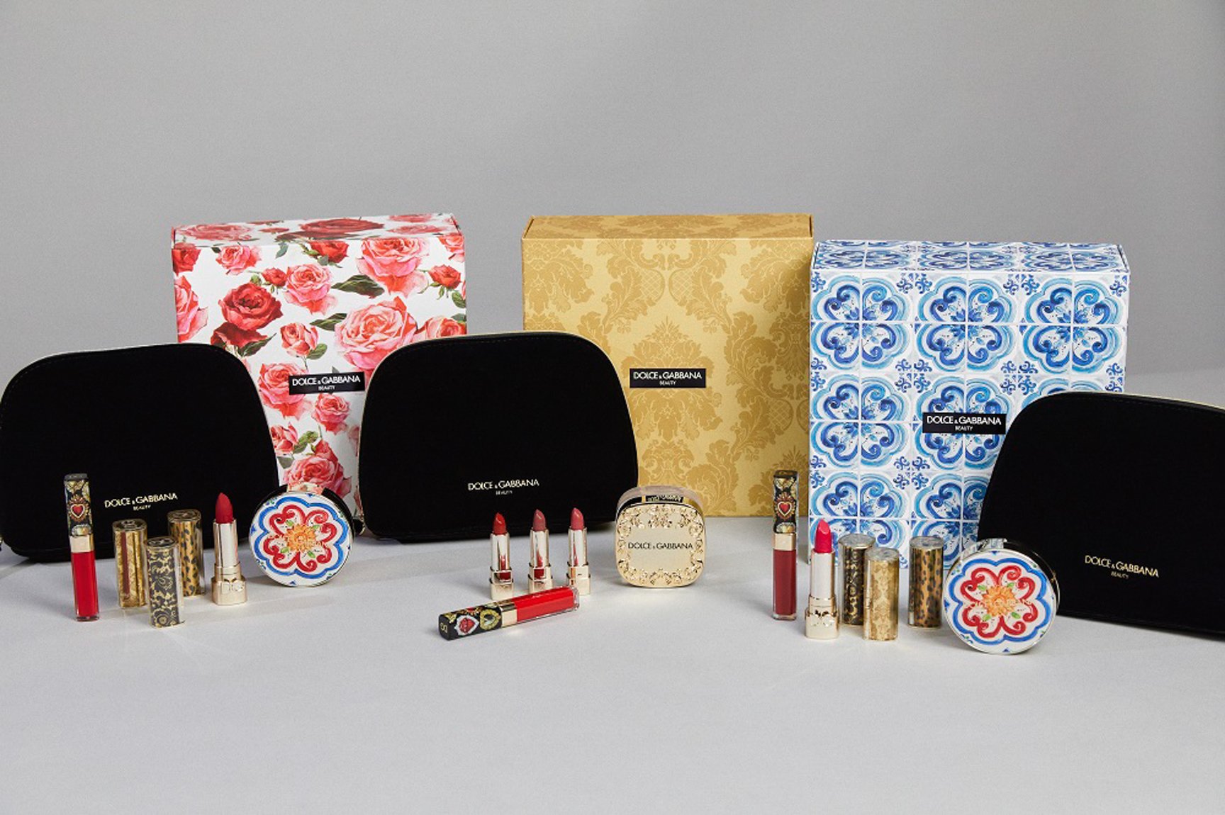 “ドルチェスキン”を体感できるファンデーションと、情熱的な口元を演出するリップをセットにした3種類のホリデーコフレ。ボックスには、ブランドのアイコニックなモチーフをデザインしました。