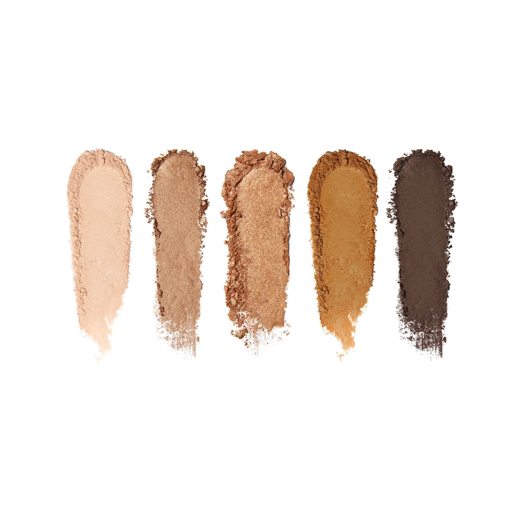 「エンバー ライツ アイシャドウ パレット」(5500円)(左から)アイシャドウ フレッシュ、メタリック アイシャドウ ビキニブロンズ、メタリック アイシャドウ エンバーライツ、アイシャドウ キャメル、アイシャドウ チョコレートキャビア
