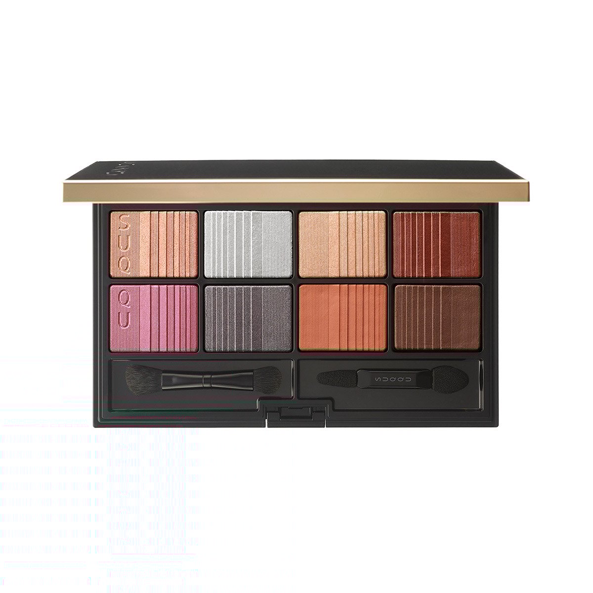 「SUQQU 2020 ホリデー アイシャドウ コンパクト」(9000円)(上段左から)ペールピンク、シルバーパール、イエローブロンズ、メタリックレッド、(下段左から)オーキッドパープル、ナイトグレー、バーンオレンジ、ディープブラウン